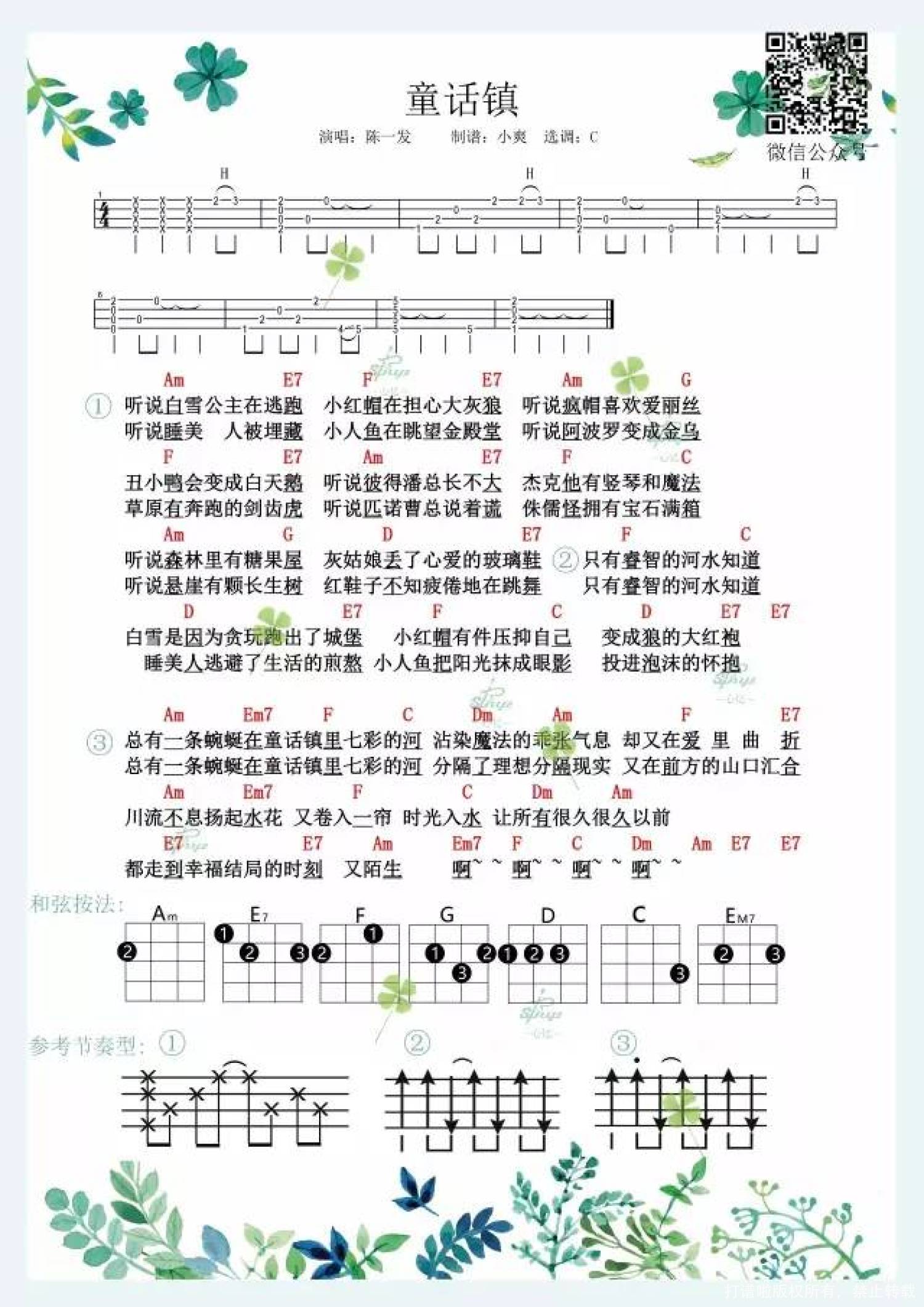 童话镇尤克里里谱 - 陈一发