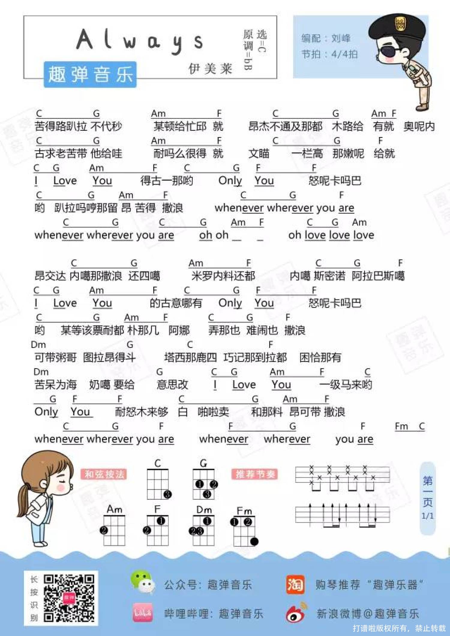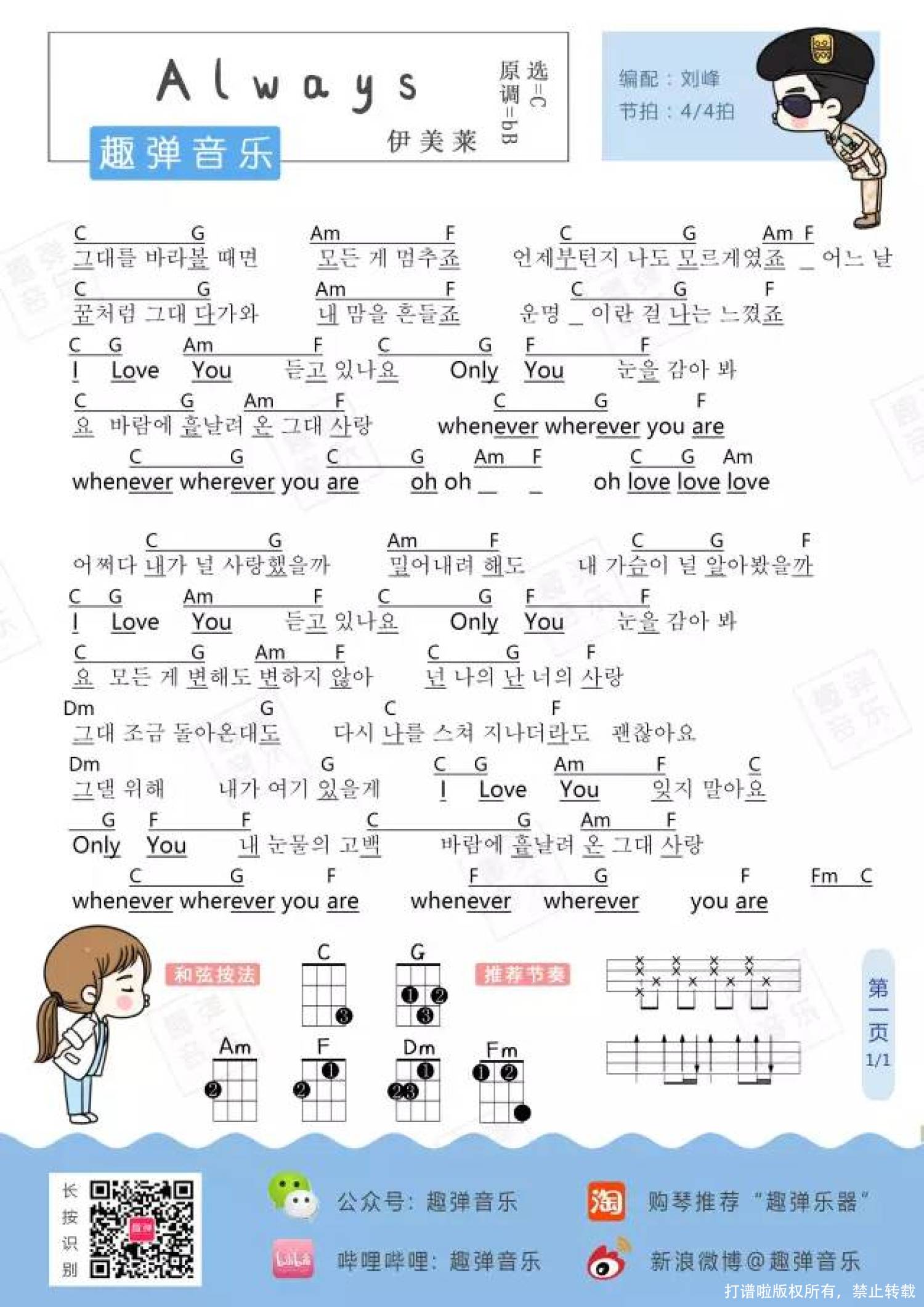 曲谱介绍: 尹美莱《always》_C调尤克里里谱