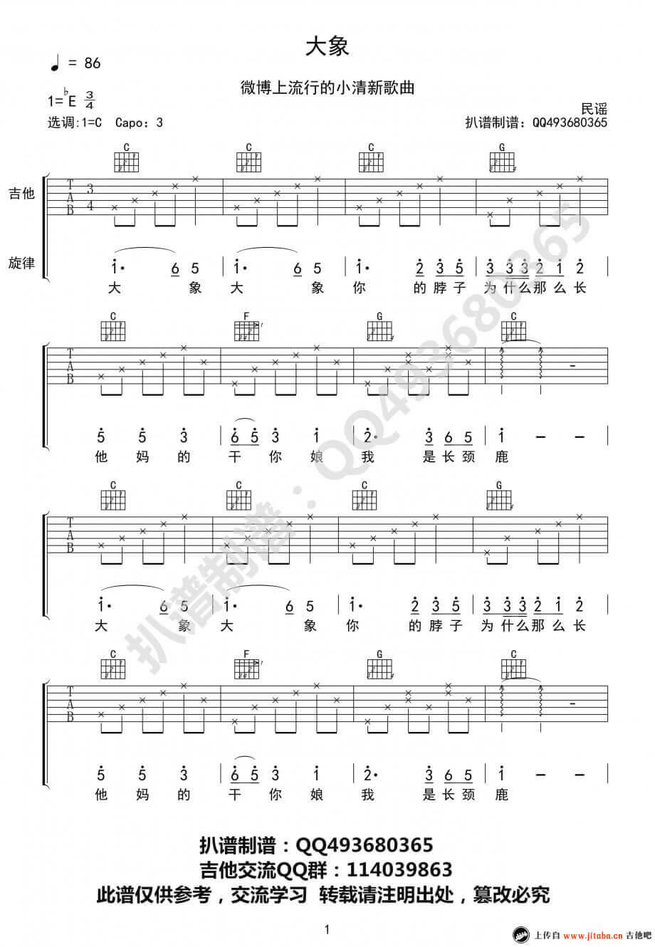 曲谱介绍: 大象吉他谱采用了C调指法,由琴谱网编配完成。这是一首在微博上流行的小清新歌曲,受到了很多人的支持和喜爱。TIPS:在这里向大家推介另外一首,它就是夏虫吉他谱啦,非常动听的一首曲子!