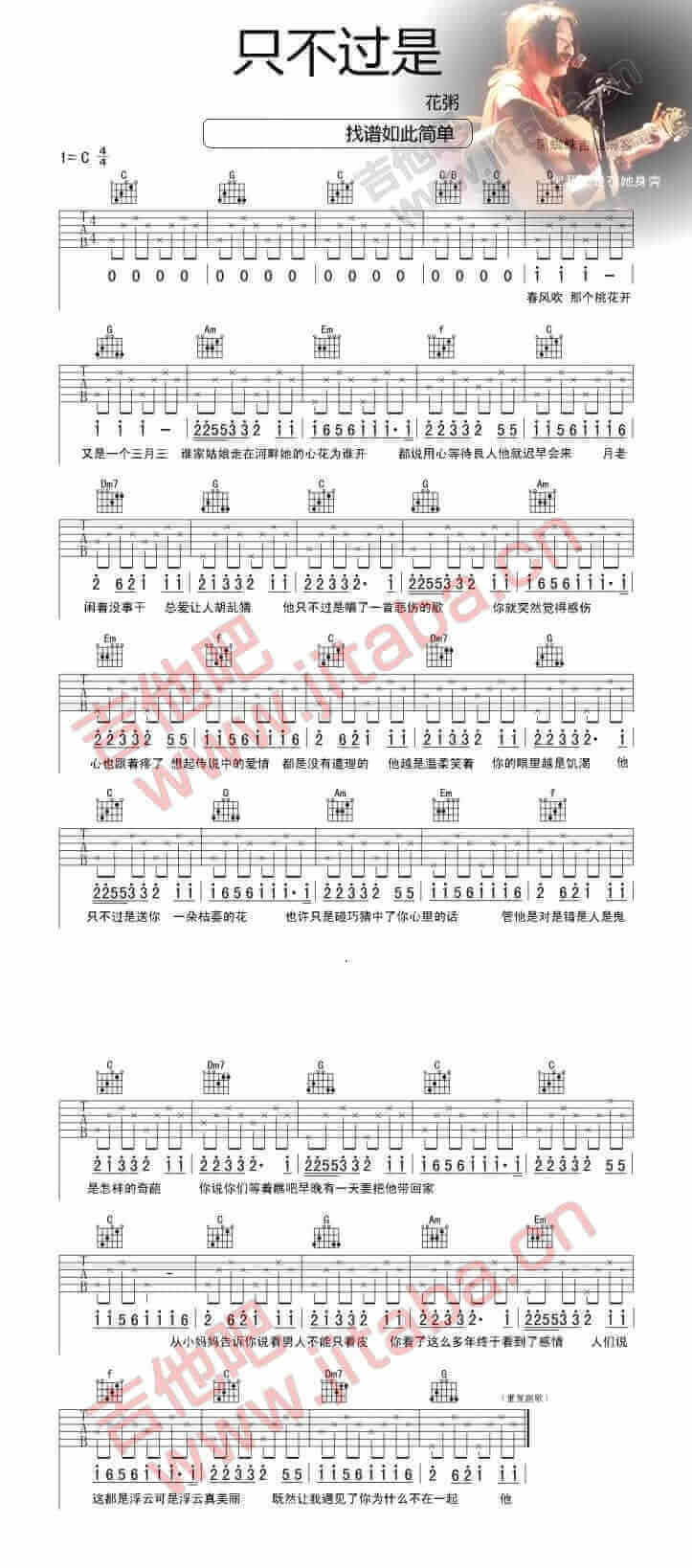只不过是吉他谱 - 花粥 - C调吉他弹唱谱