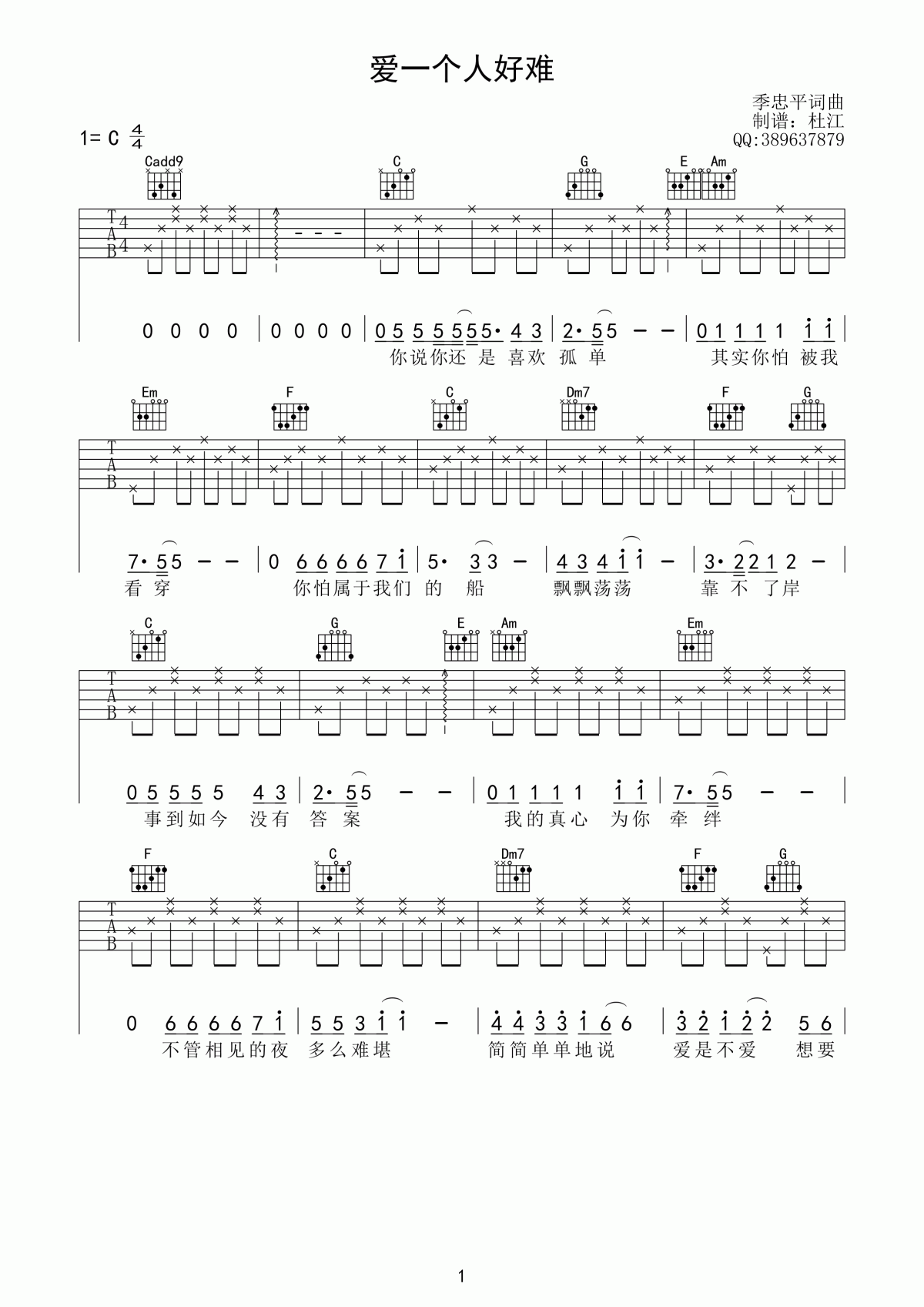 当前位置:琴谱网>吉他弹唱>苏永康 爱一个人好难