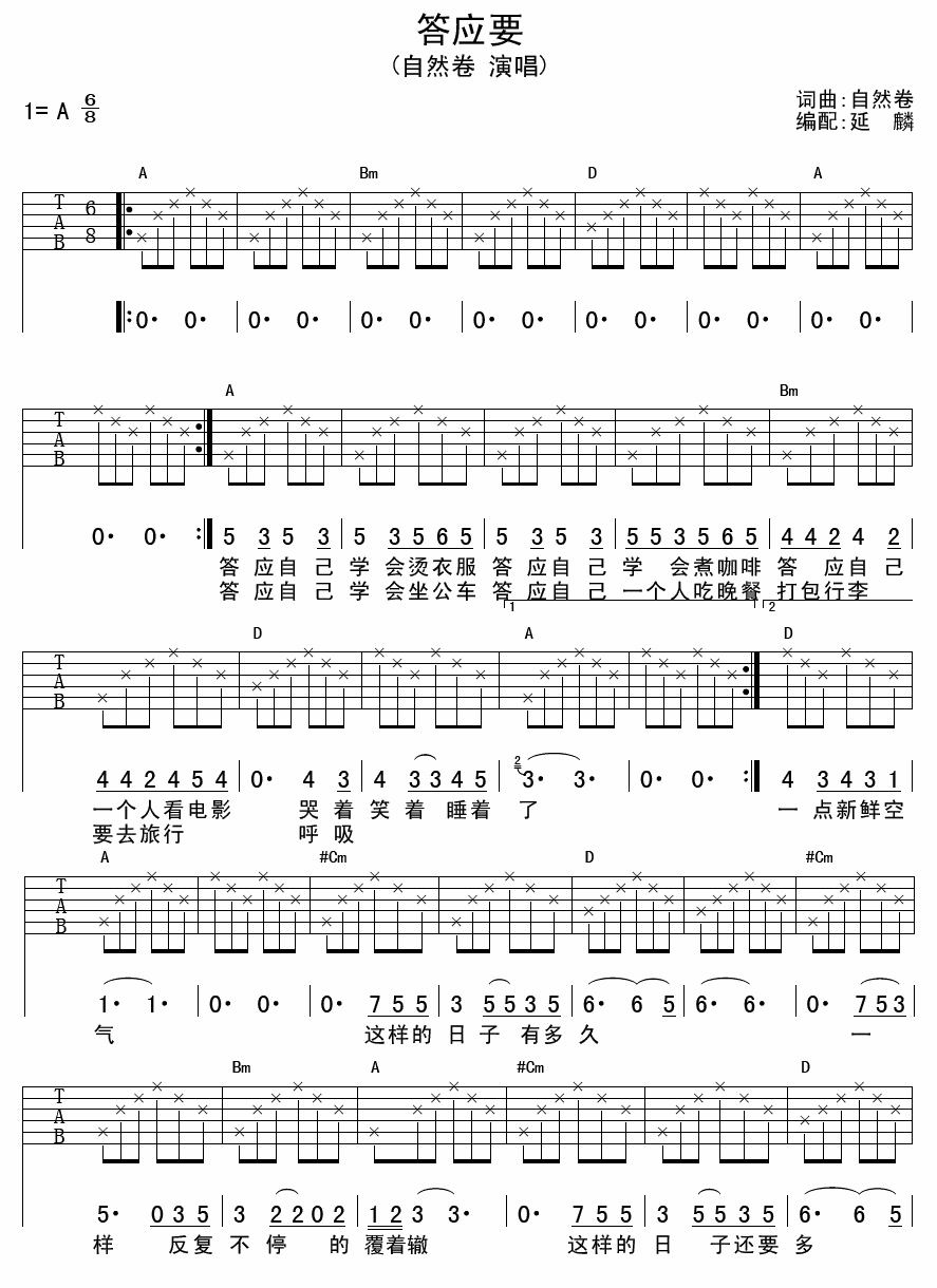 答应要吉他谱 - 自然卷 - A调吉他弹唱谱