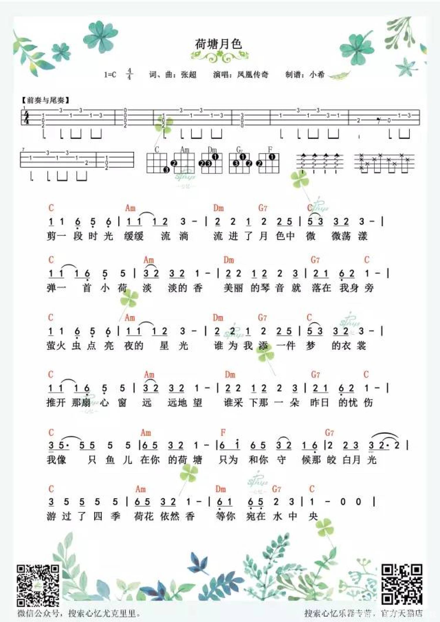 荷塘月色尤克里里谱 - 凤凰传奇