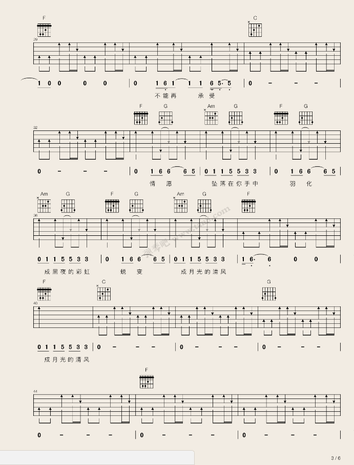 吉他弹唱F调来源:良好市民405 浏览2024-02-03 21:53发布图谱共6页