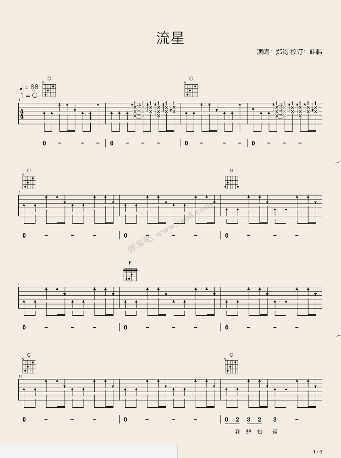 流星吉他谱 - 郑钧 - F调吉他弹唱谱