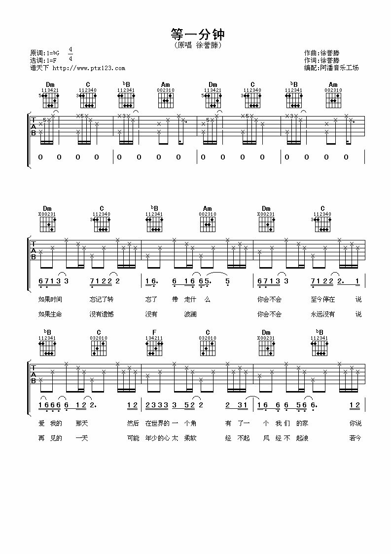 当前位置:琴谱网>吉他弹唱>等一分钟