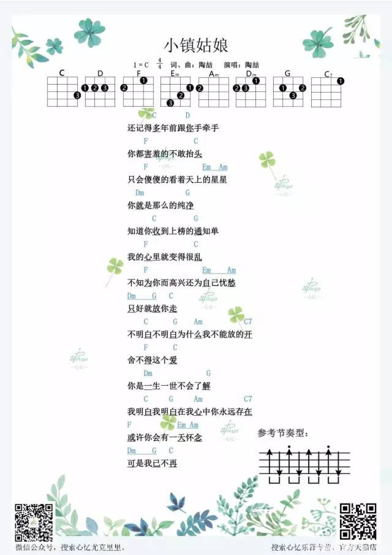 曲谱介绍: 陶喆《小镇姑娘》_C调尤克里里谱