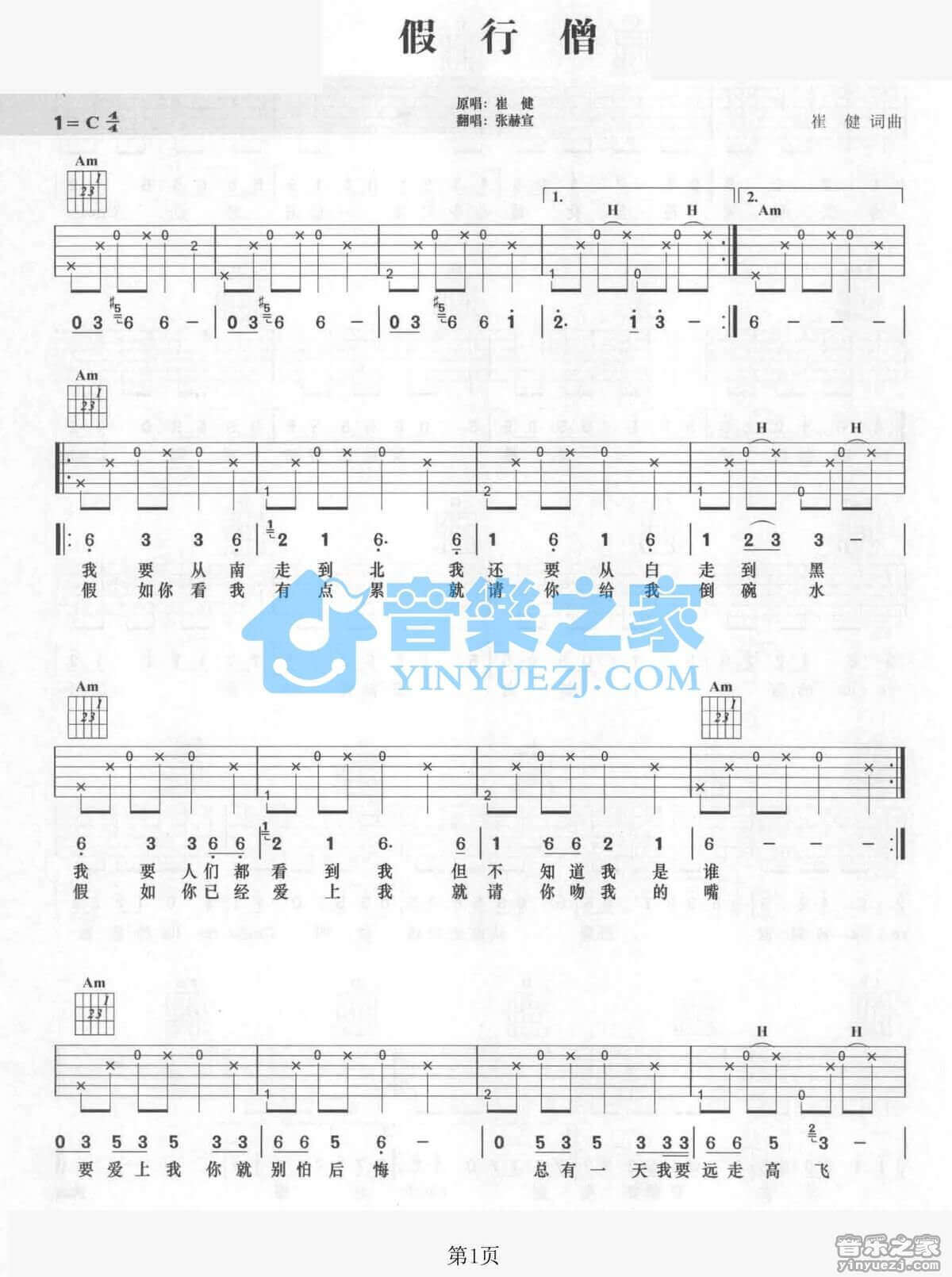 假行僧吉他谱 - 崔健 - C调吉他弹唱谱