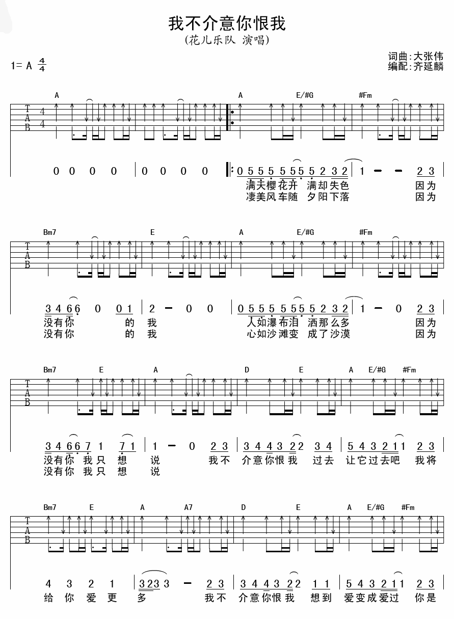 我不介意你恨我吉他谱 - 花儿乐队 - A调吉他弹唱谱
