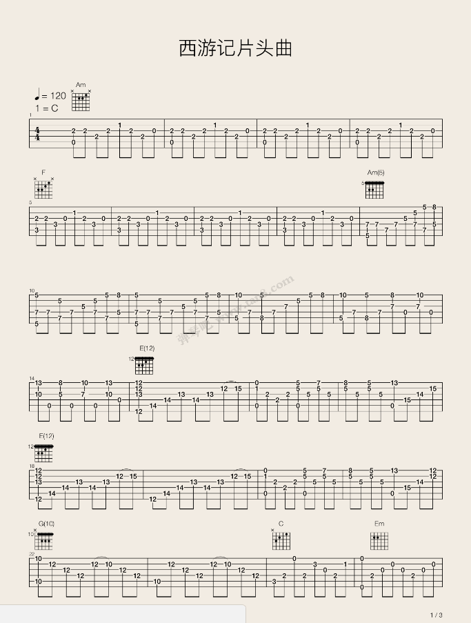 曲谱介绍: 西游记片头曲吉他谱采用了C调指法,由弹琴吧编配完成。另外一首,天文特征吉他谱也很赞,小伙伴可以愉快的学习起来了。