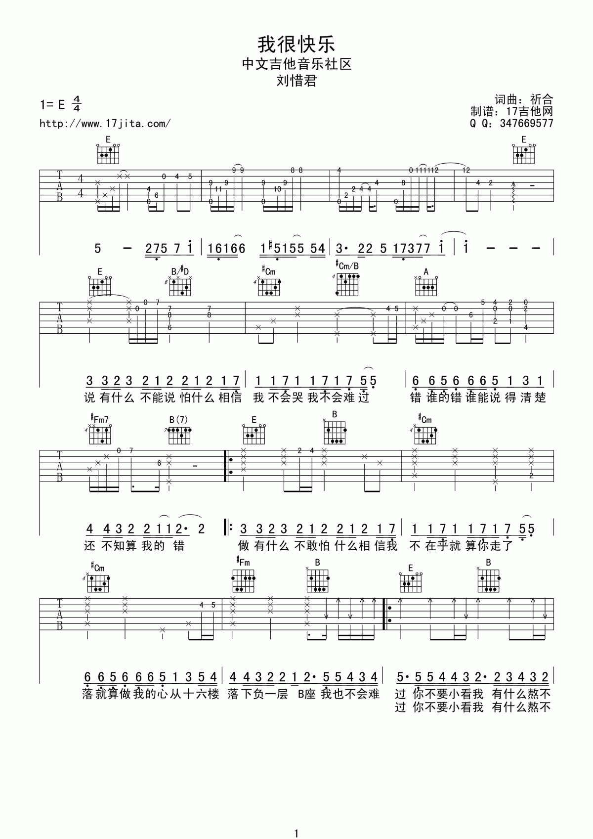 当前位置:琴谱网>吉他弹唱>刘惜君 我很快乐