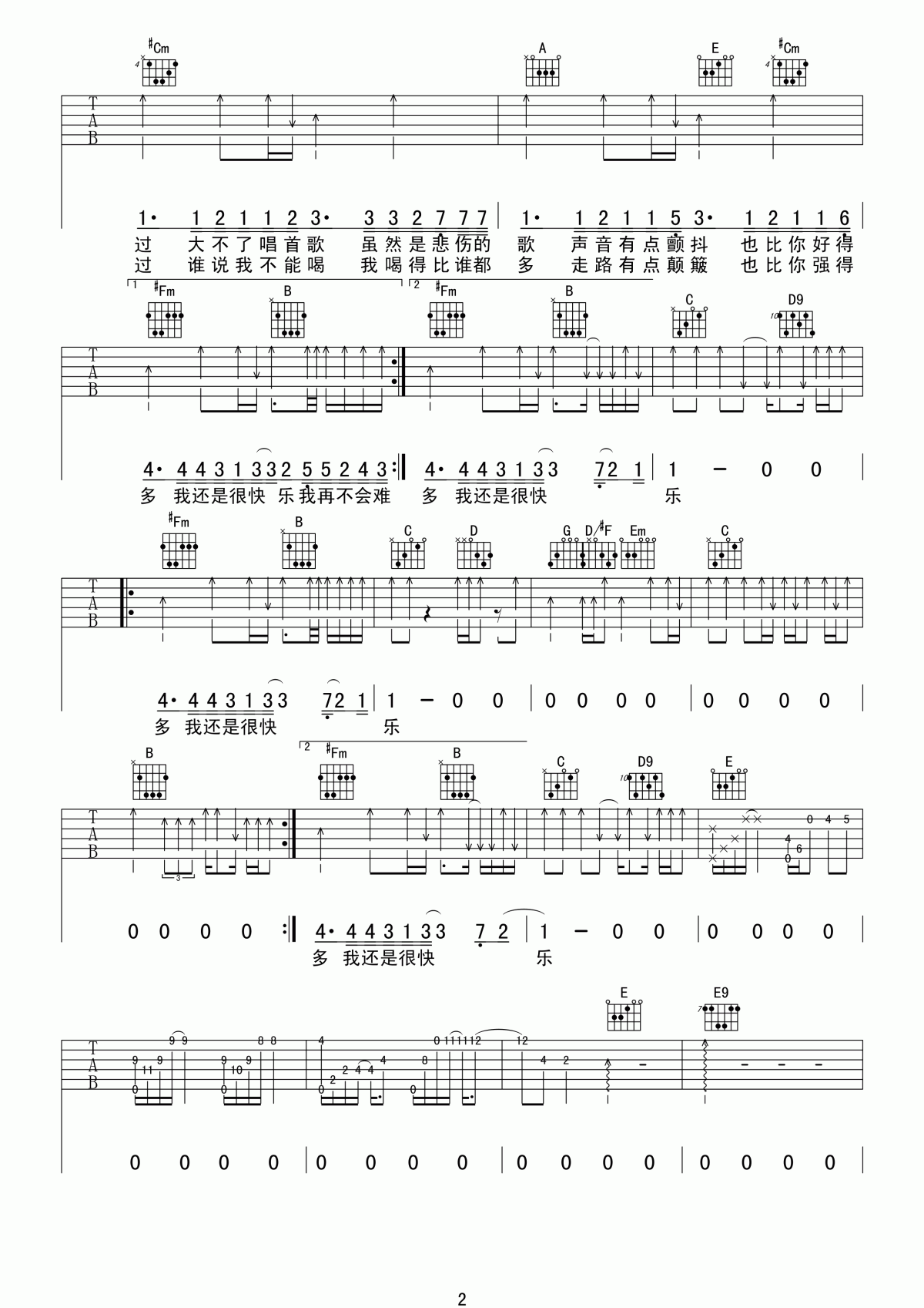 曲谱介绍: 刘惜君《刘惜君我很快乐》吉他弹唱谱,共有2张高清图谱,免翻页排版设计。