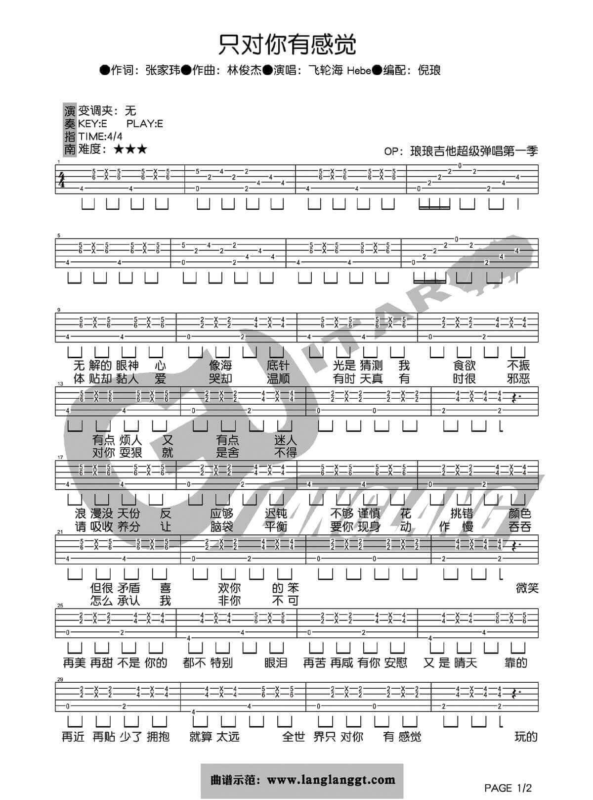 当前位置:琴谱网>吉他弹唱>只对你有感觉