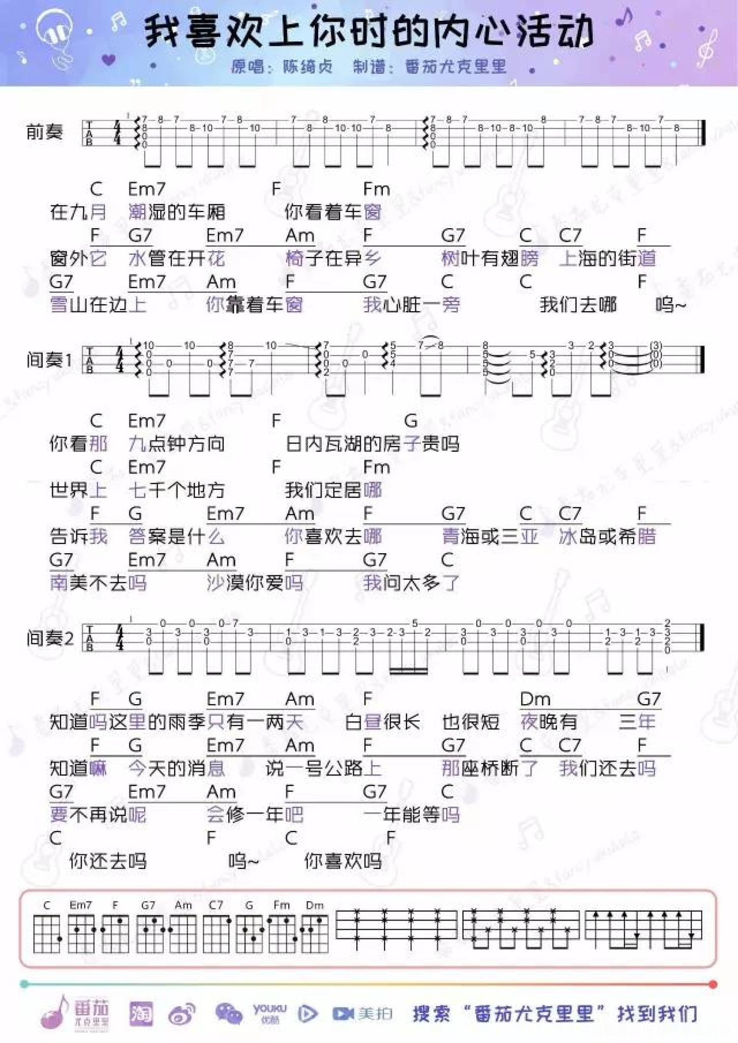 我喜欢上你时的内心活动尤克里里谱 - 陈倚贞