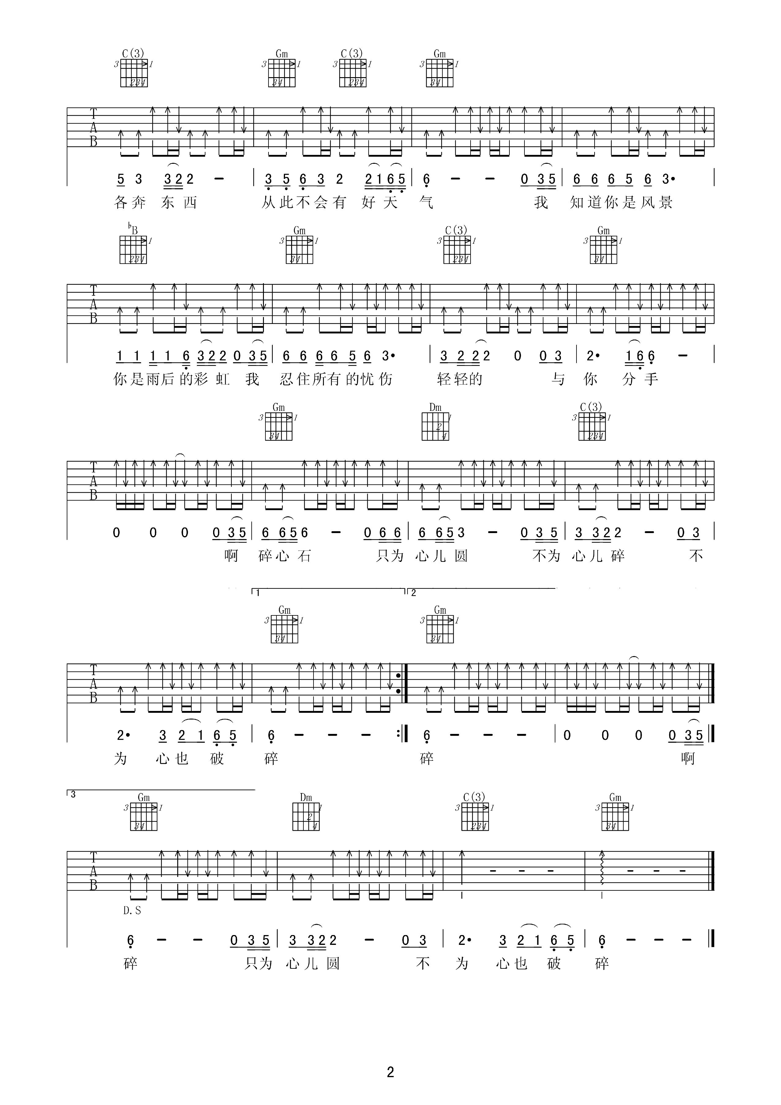 曲谱介绍: 碎心石吉他谱采用了bB调指法,由梦断弦音编配完成。对于这首歌曲的感受就像它的歌名一样让人心碎。TIPS:在这里向大家推介另外一首,它就是好多多的云吉他谱啦,非常动听的一首曲子!