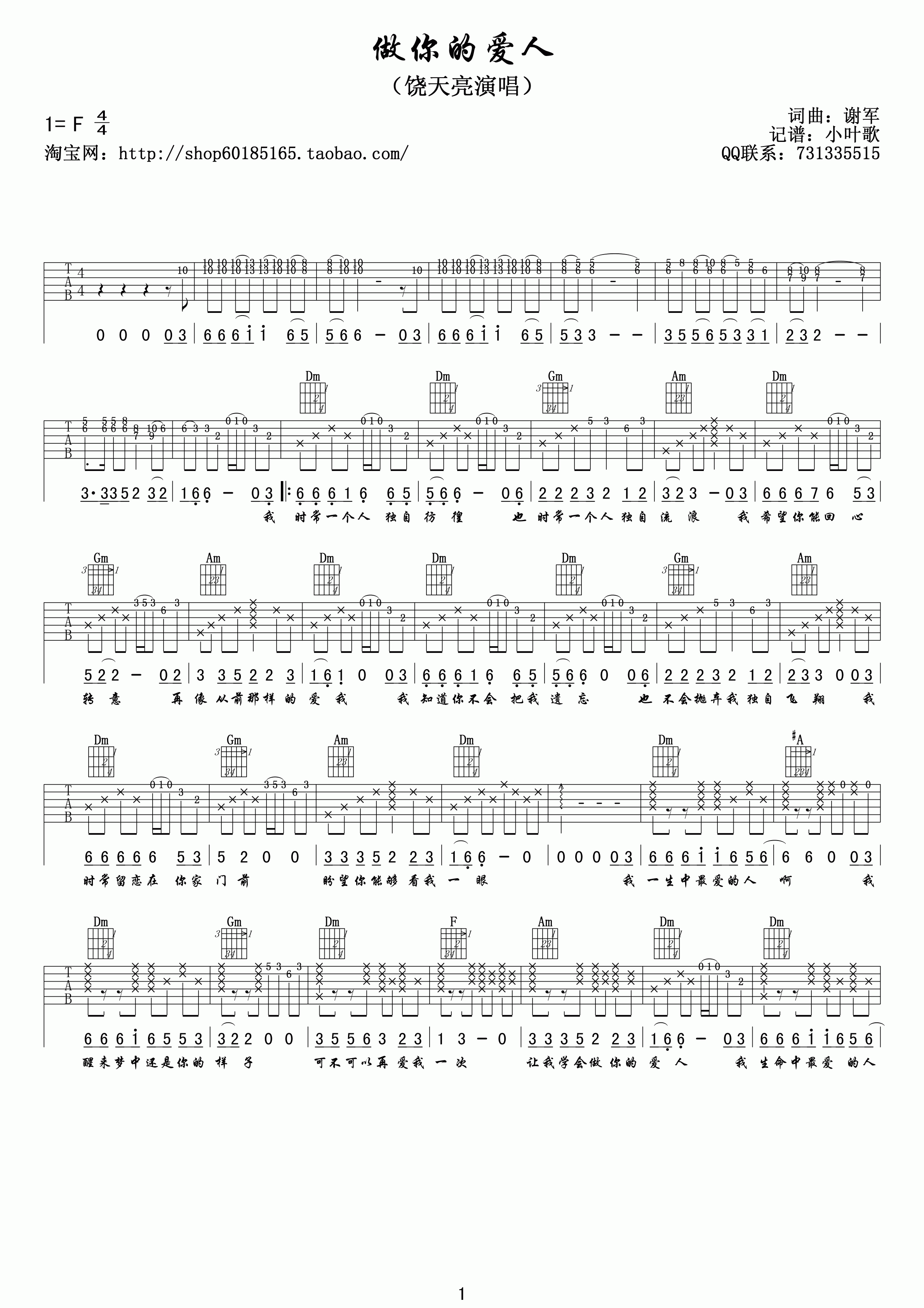 做你的爱人吉他谱 - 饶天亮 - F调吉他弹唱谱
