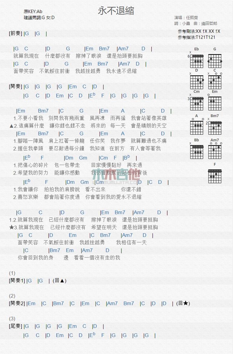 永不退缩_吉他谱 - 永不退缩 - 吉他弹唱谱