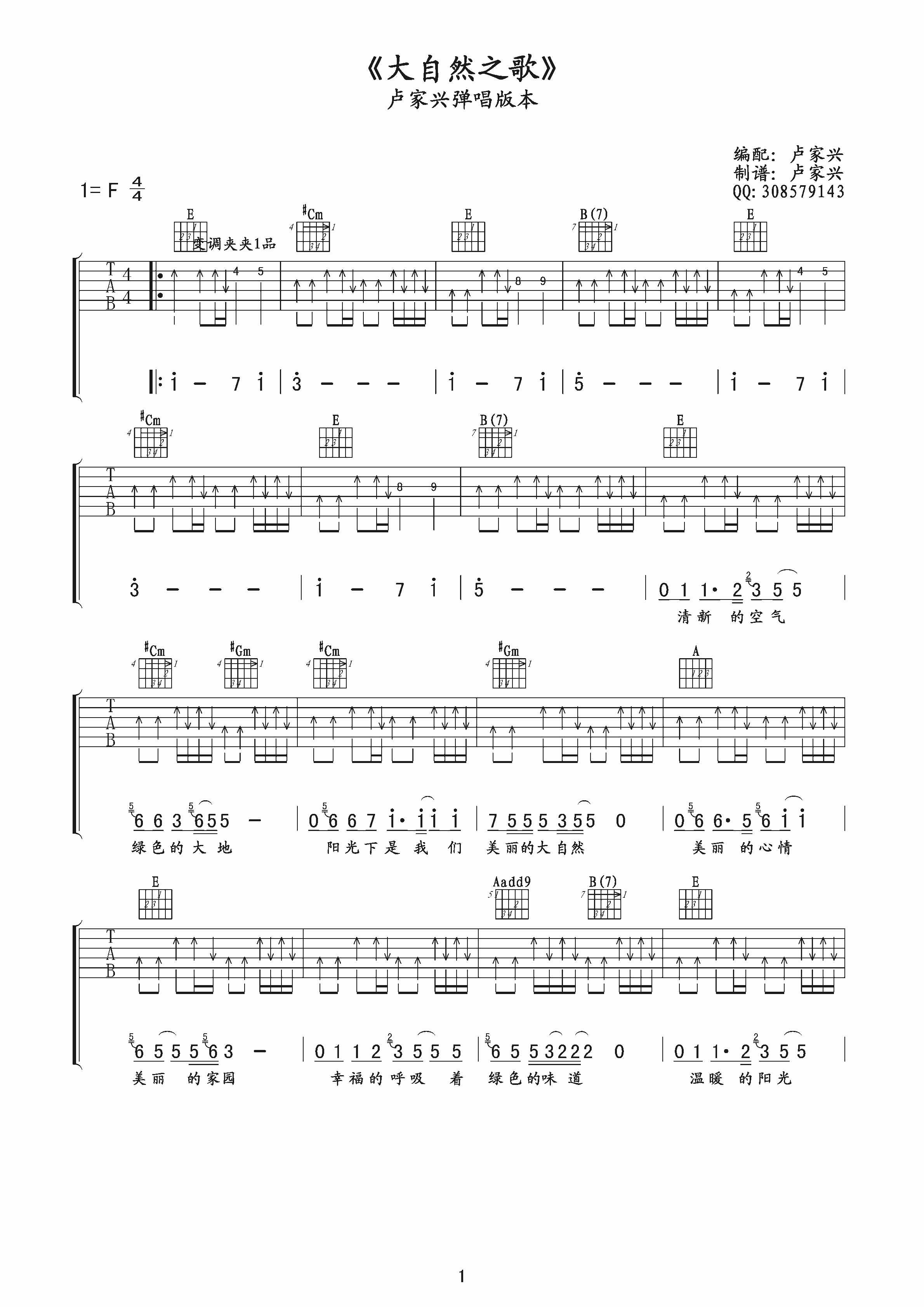 大自然之歌吉他谱 - 卢家兴 - F调吉他弹唱谱