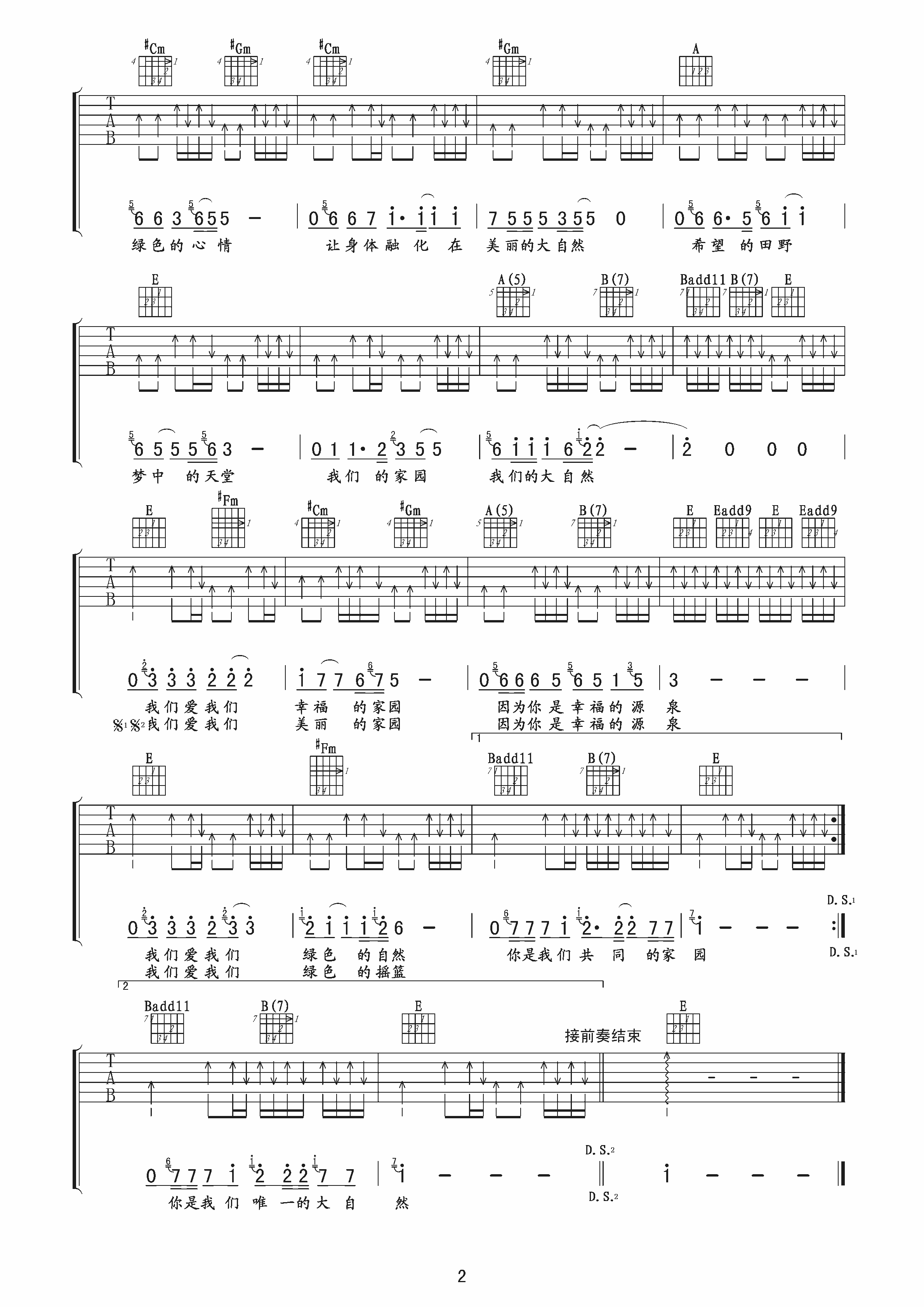 当前位置:琴谱网>吉他弹唱>大自然之歌