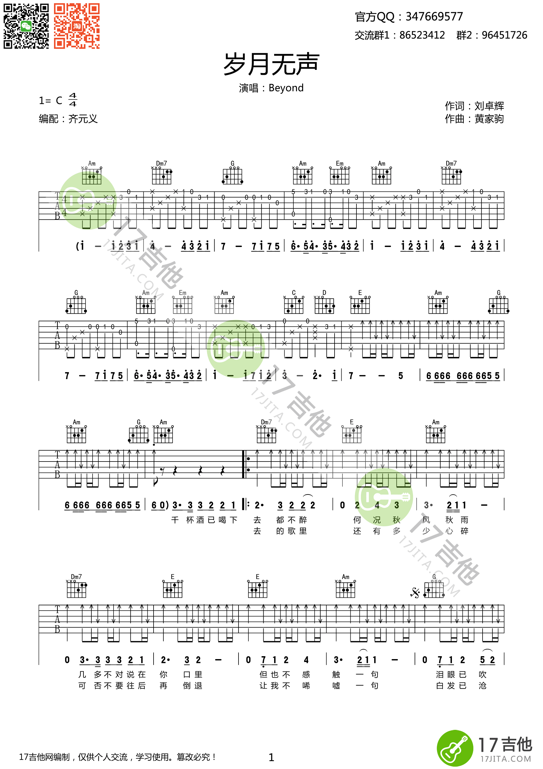 岁月无声吉他谱 - Beyond - C调吉他弹唱谱