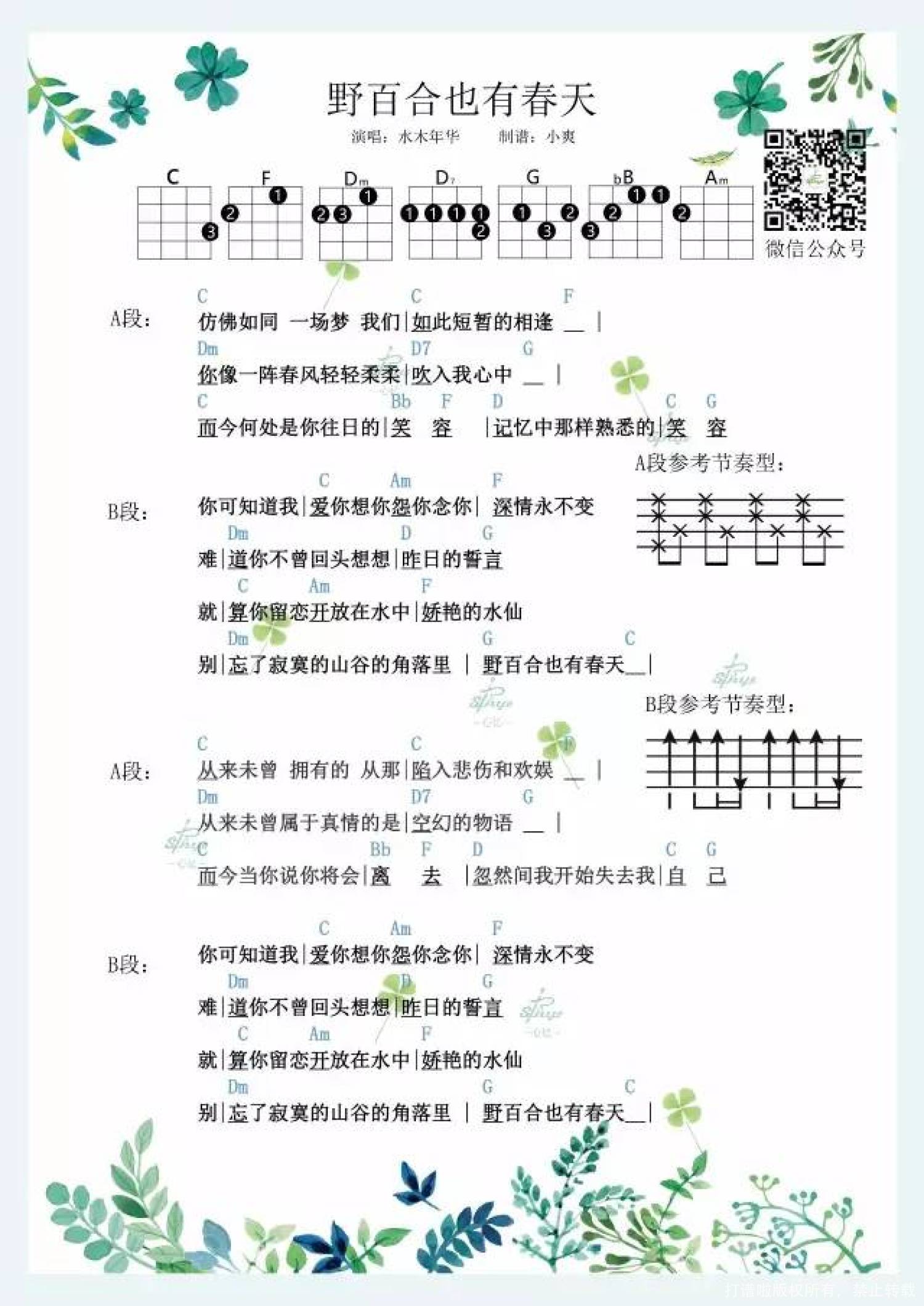 野百合也有春天尤克里里谱 - 水木年华