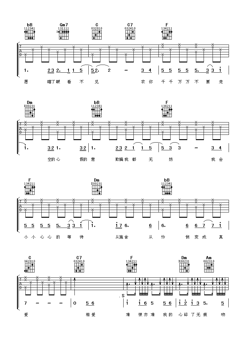 当前位置:琴谱网>吉他弹唱>心碎了无痕