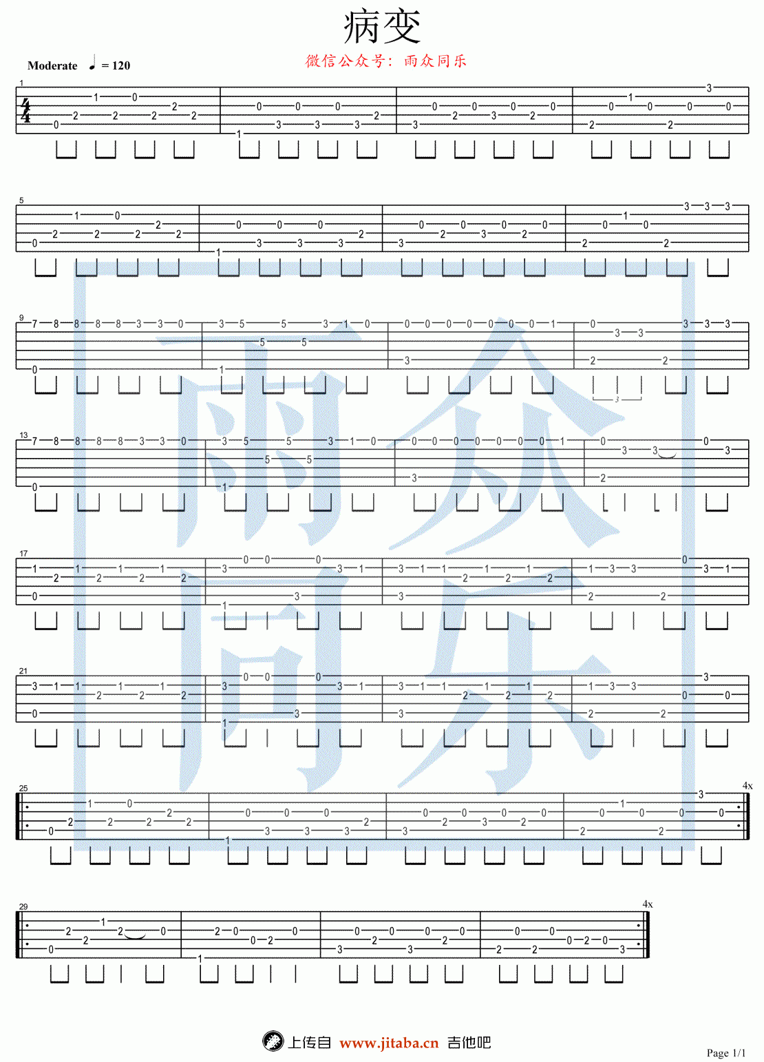 当前位置:琴谱网>吉他独奏>Bingbian病变