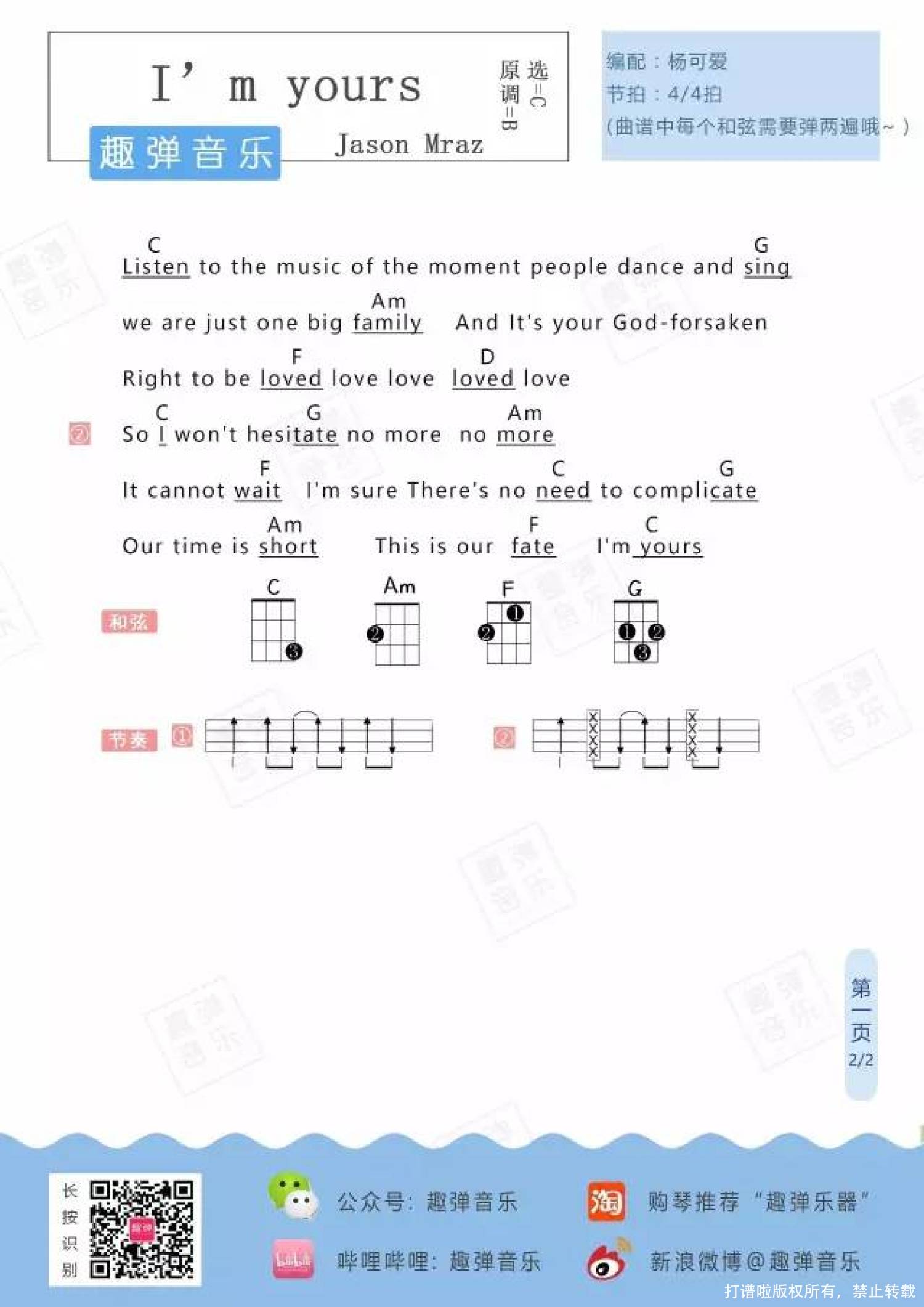 曲谱介绍: I'mYours  ukulele曲谱