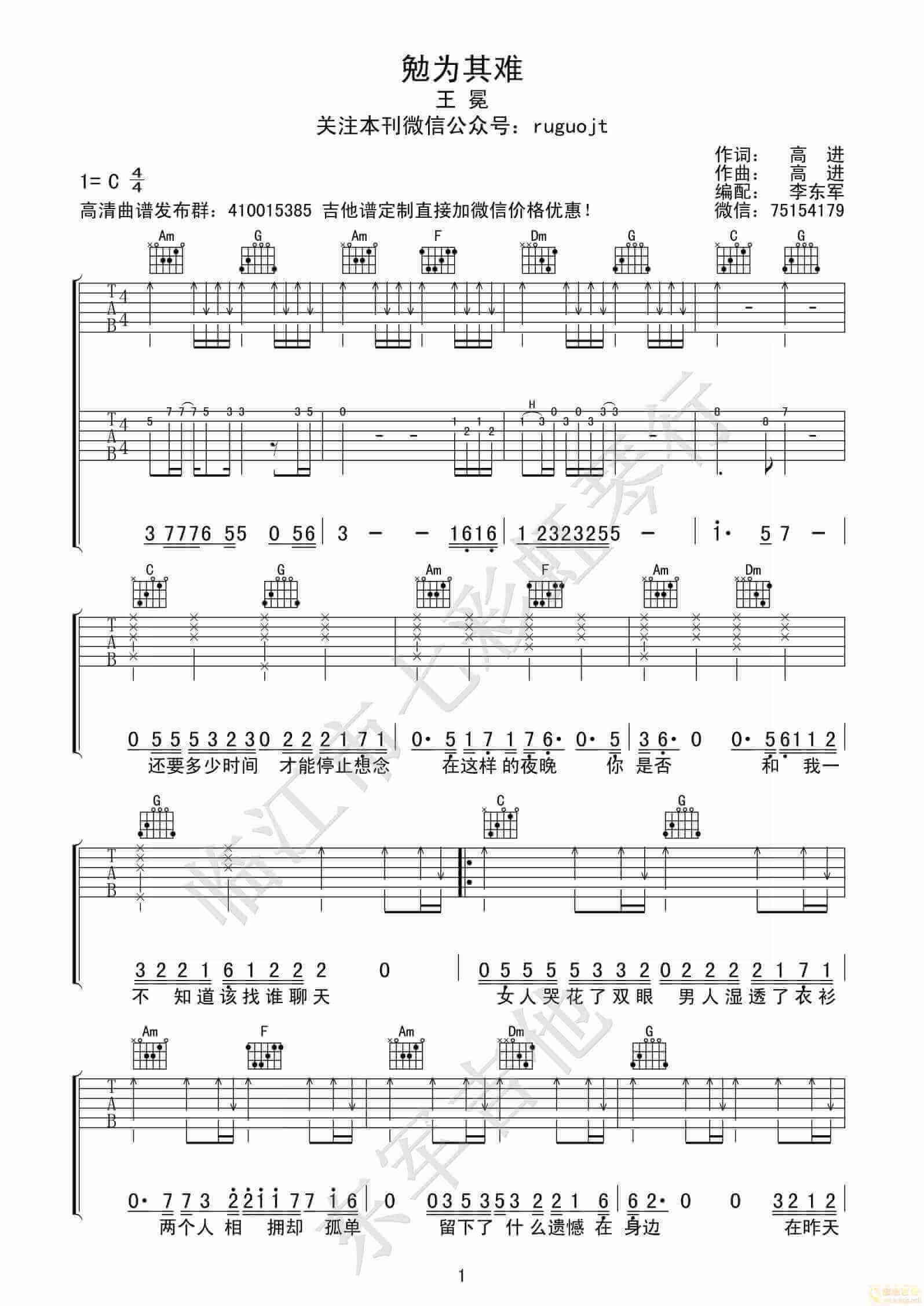 曲谱介绍: 勉为其难吉他谱采用了C调指法,由临江南七彩虹琴行编配完成。除了这首谱以外,情醉莲花吉他谱也非常不错,速度去围观一下吧!