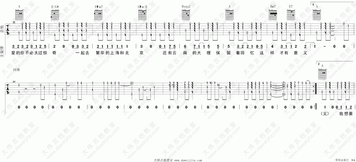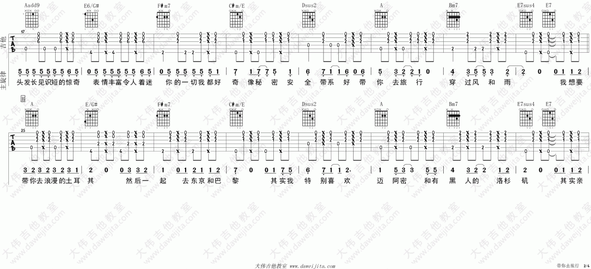 带你去旅行_A调吉他谱 - 带你去旅行 - A调吉他弹唱谱