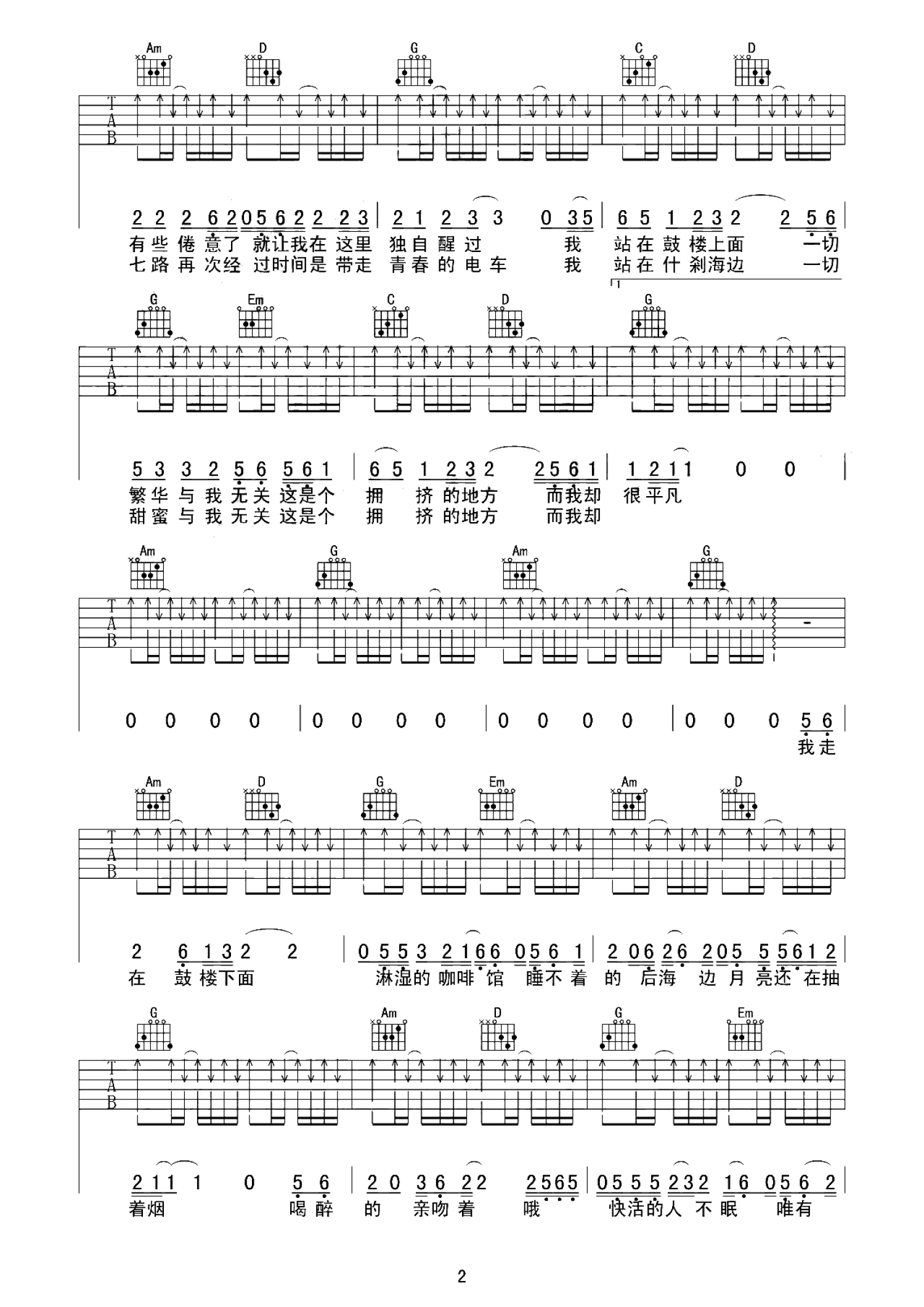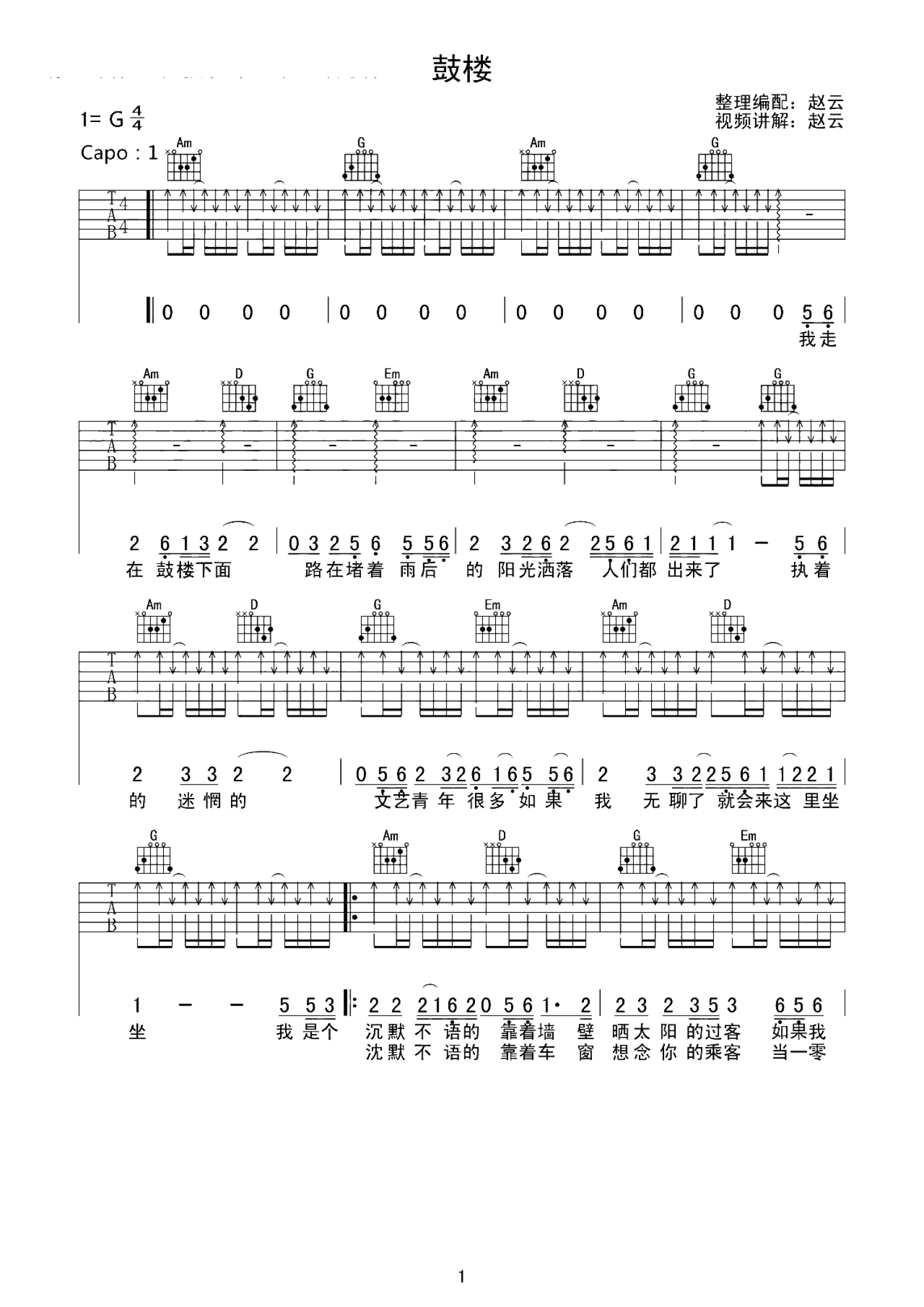 鼓楼吉他谱 - 赵雷 - 吉他弹唱谱 - 扫弦版