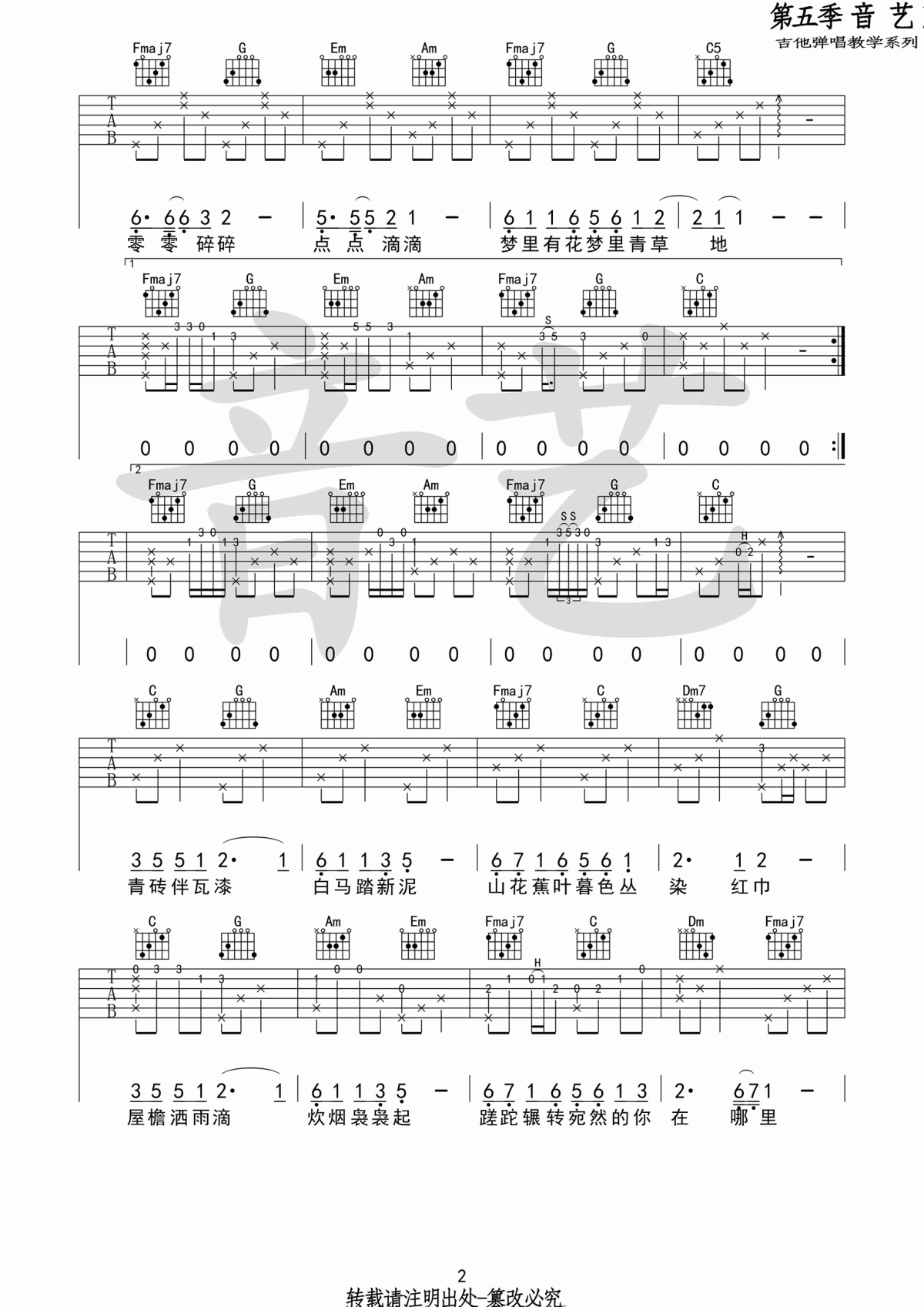 声声慢吉他谱 - 崔开潮 - C调吉他弹唱谱 - 原版
