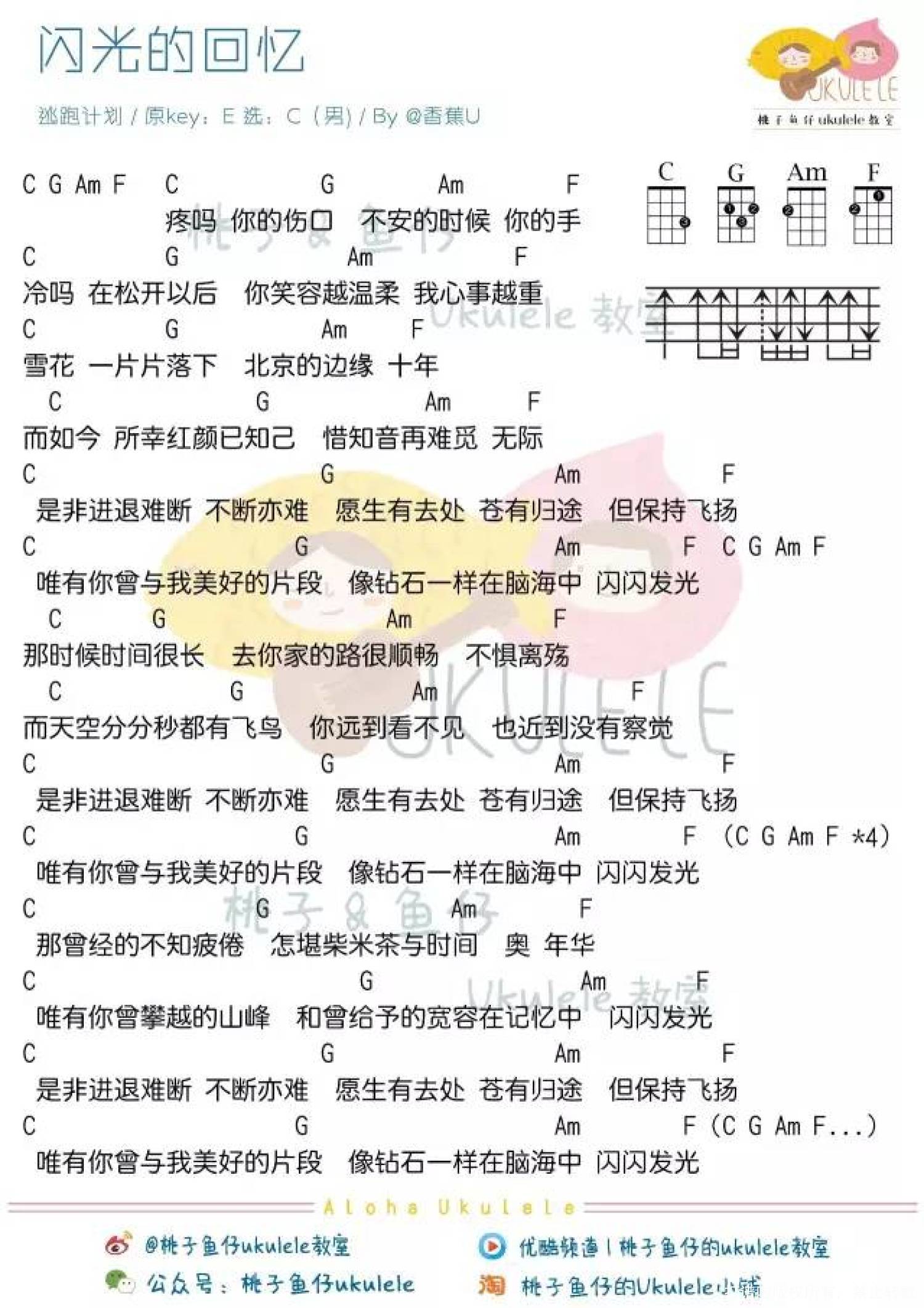 曲谱介绍: 逃跑计划《闪亮的回忆》_C调尤克里里谱_男生版