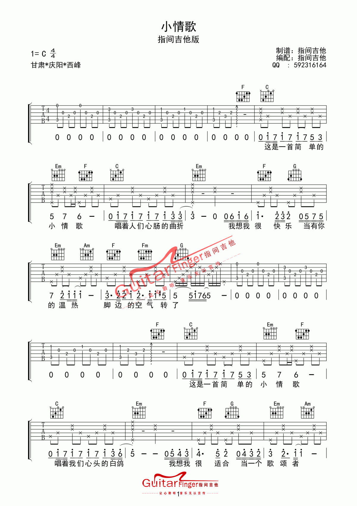 曲谱介绍: 苏打绿《小情歌》吉他弹唱谱,采用C调指法编配,共有2张高清图谱,免翻页排版设计。