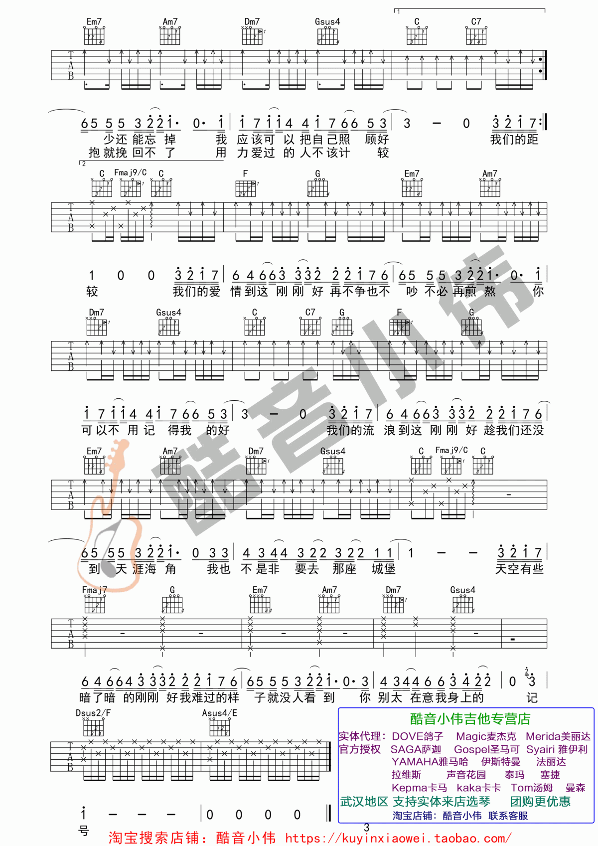 曲谱介绍: 薛之谦刚刚好吉他谱,C调六线谱编配。薛之谦的一首悲伤的歌唱出了他爱人的缠结,带着细腻的心碎。那些不愿勇敢的人,那些在岁月的沉淀下显得温柔和抱怨的人。