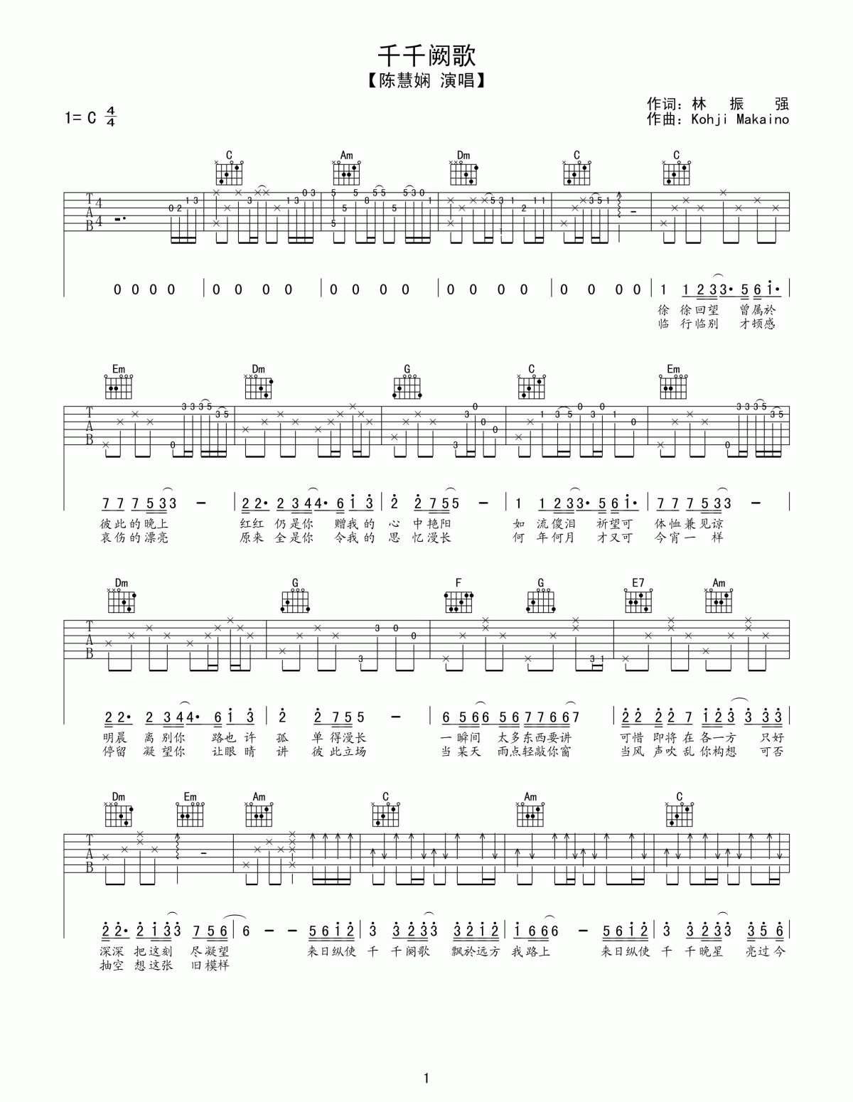 千千阙歌吉他谱 - 陈慧娴 - 吉他弹唱谱