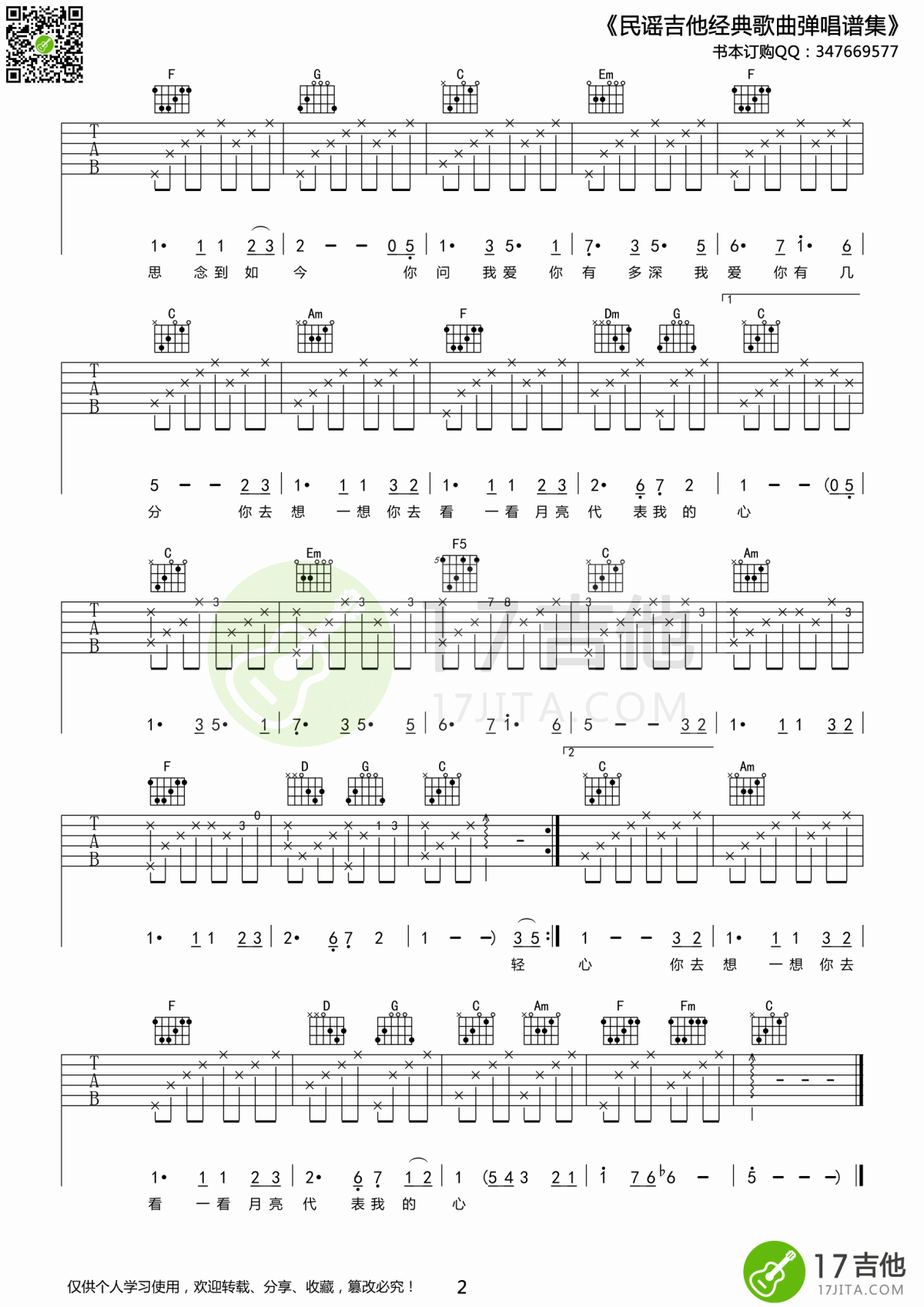 当前位置:琴谱网>吉他弹唱>月亮代表我的心