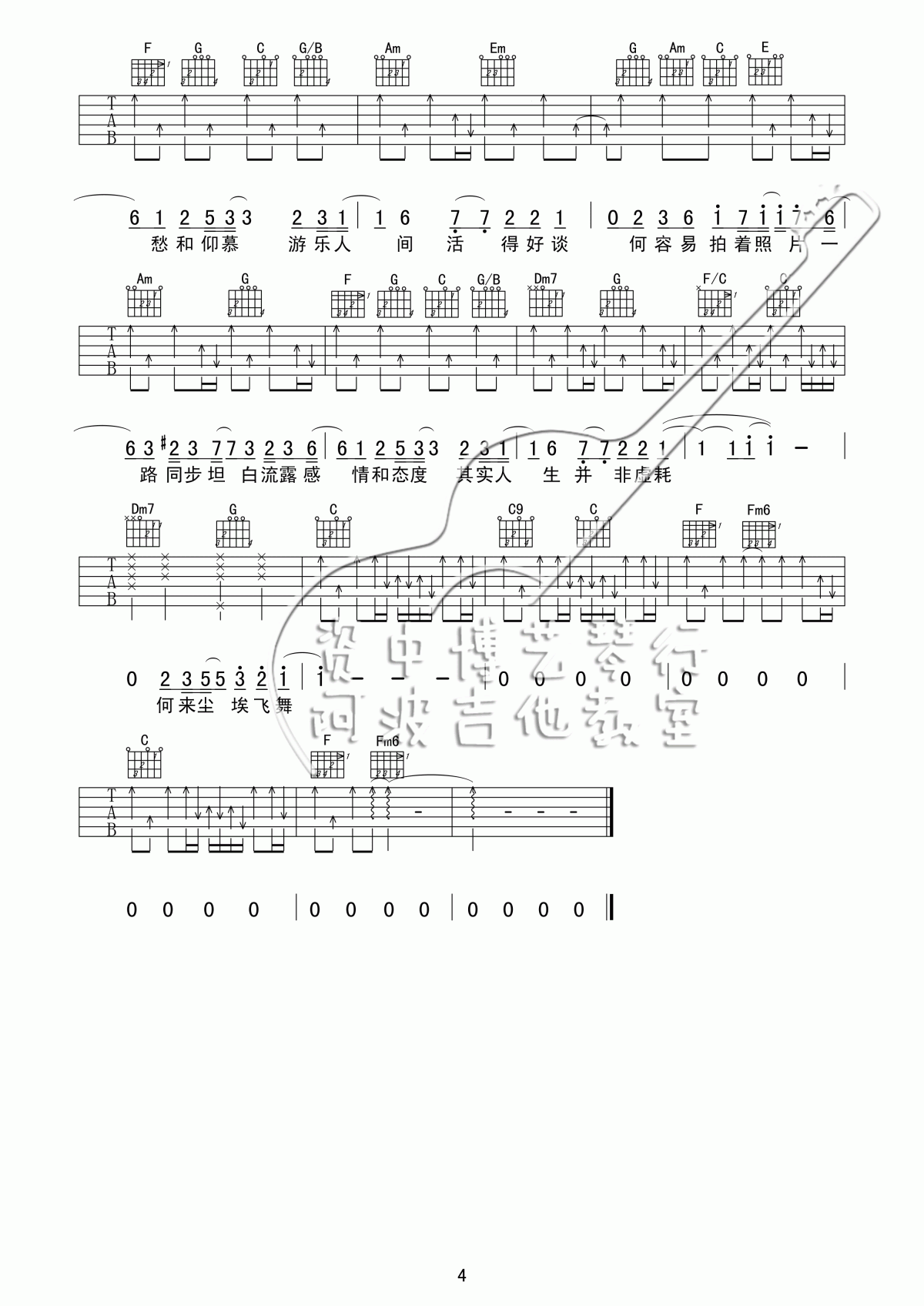 曲谱介绍: 沙龙吉他谱陈奕迅沙龙吉他六线谱,沙龙吉他谱,歌曲原调E选用C调和弦指法,变调夹Capo=4。感谢您对ABO的编辑和分享。四张图片分两页显示。陈奕迅的粤语歌曲。