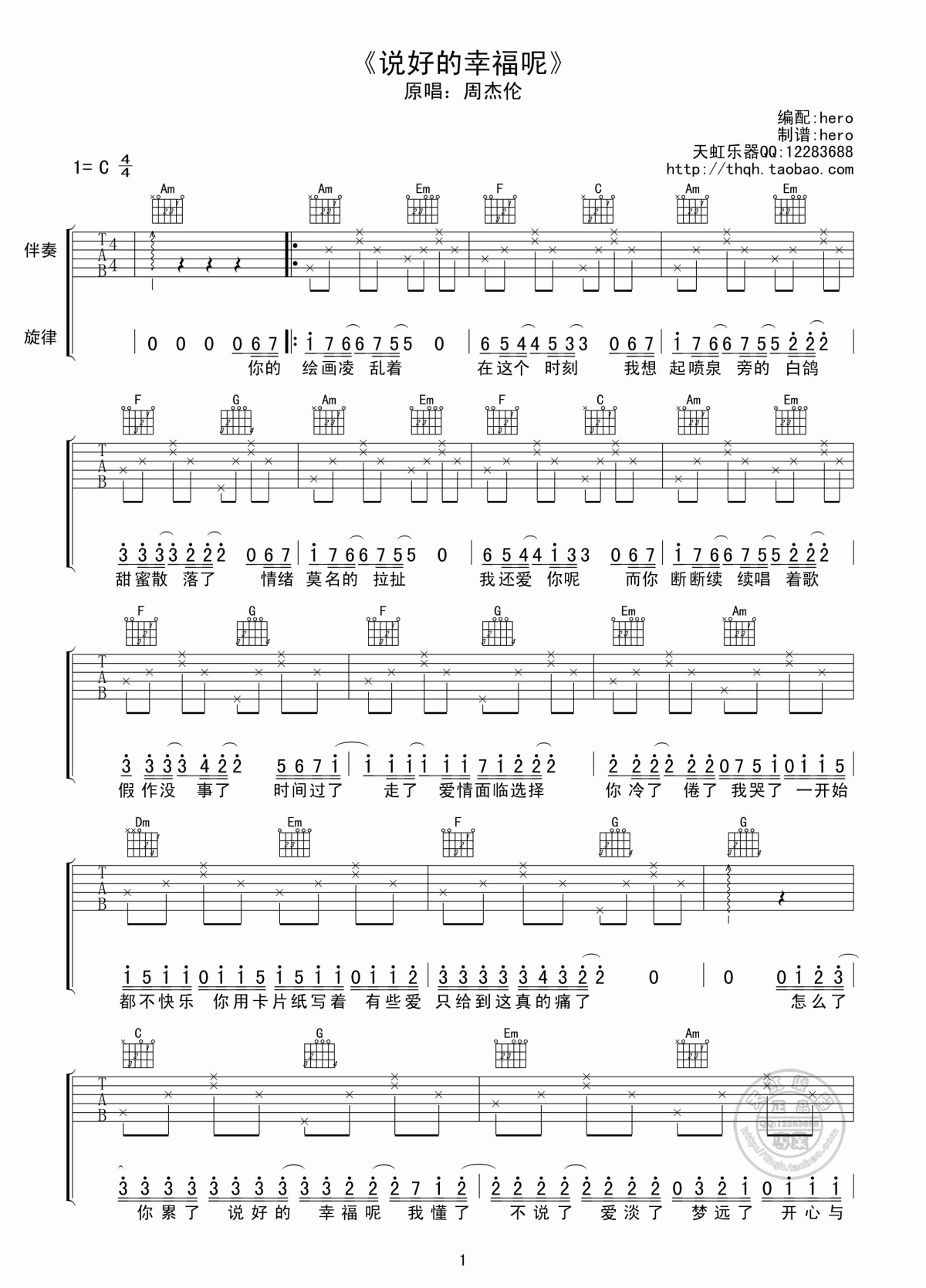 当前位置:琴谱网>吉他弹唱>说好的幸福呢