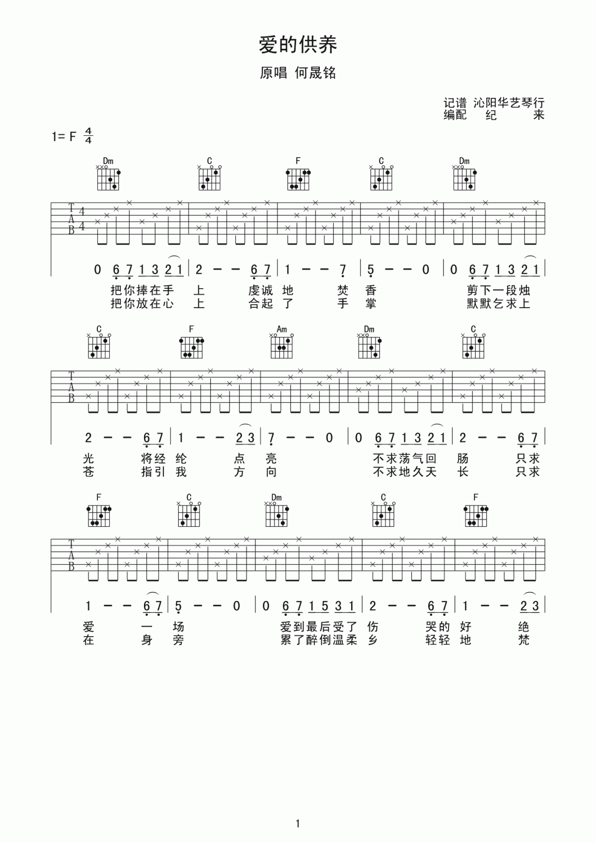 爱的供养吉他谱 - 何晟铭 - 吉他弹唱谱