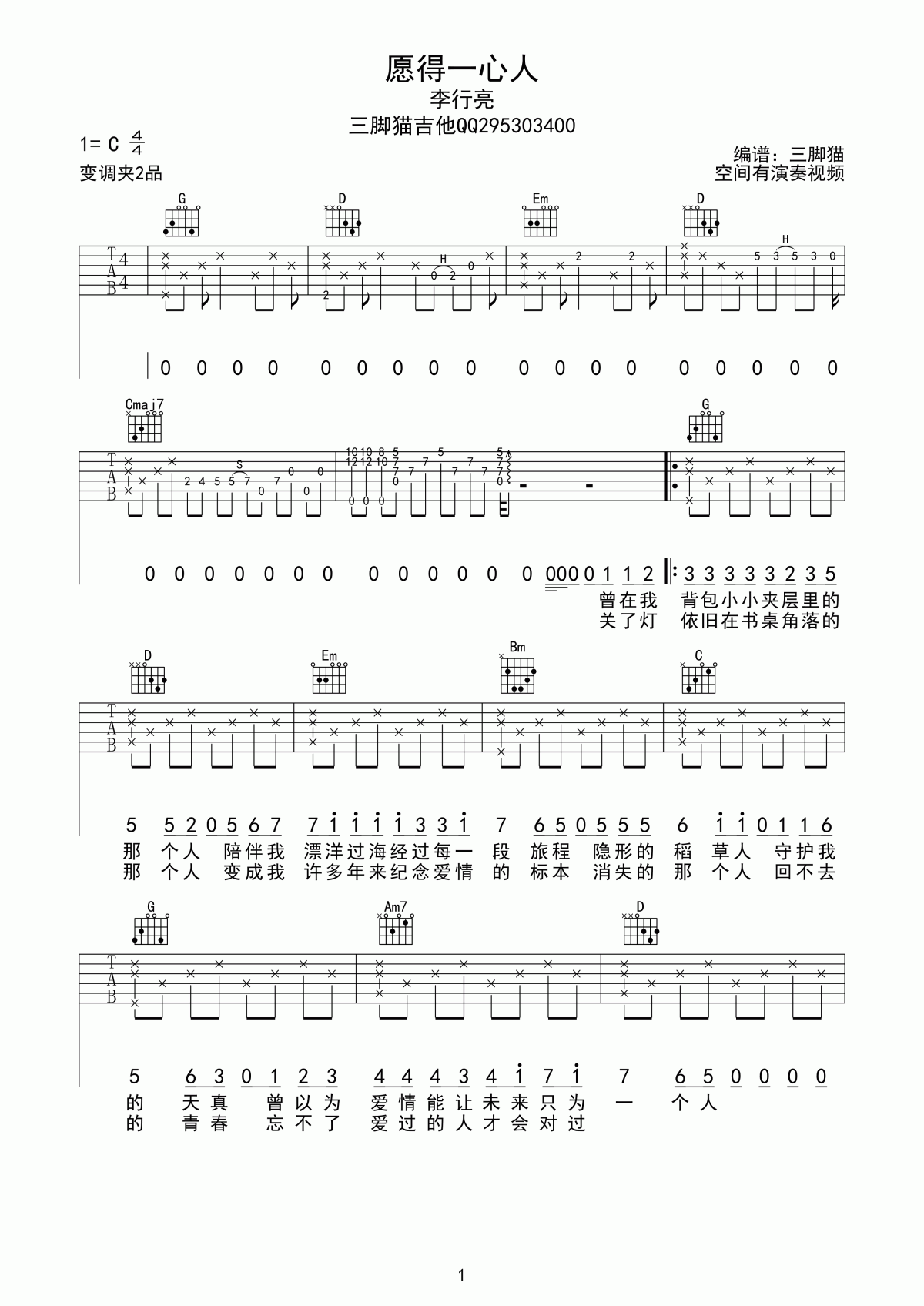 曲谱介绍: 愿得一人心吉他六线谱李行亮好听的温暖情歌,感谢大伟编配的这版《愿得一人心》吉他谱。在悲伤中,静静地吟唱着深沉的爱和翻滚江海的伤痕,它们轻轻地抚平和抚慰着每一个浮躁的灵魂。音乐是六行格式,有三张图片。