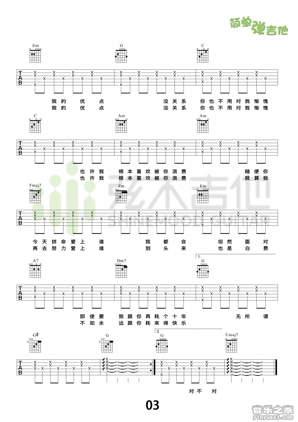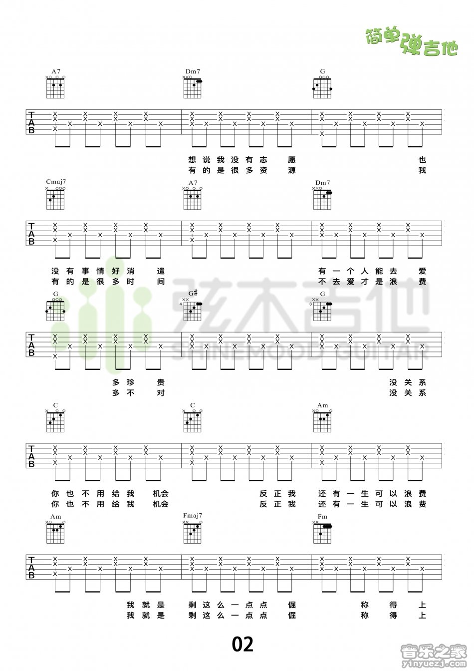 浪费_吉他谱 - 浪费 - 吉他弹唱谱