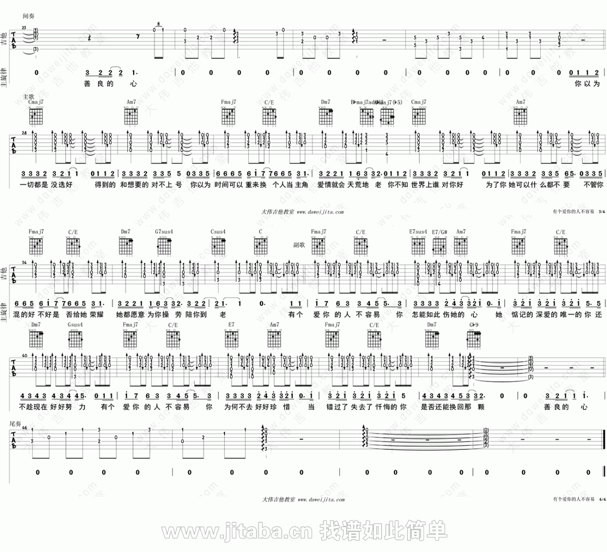 当前位置:琴谱网>吉他弹唱>有个爱你的人不容易