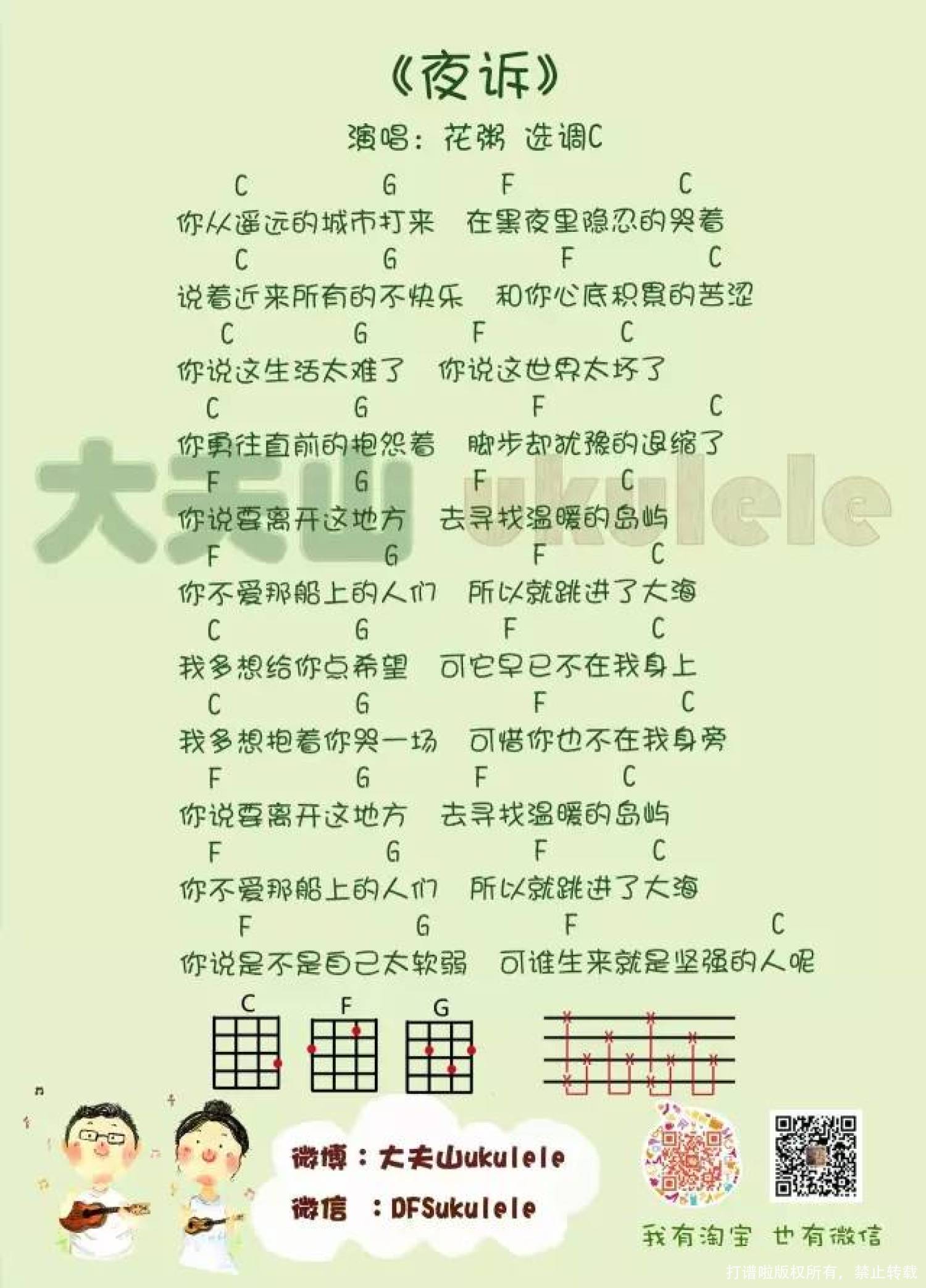 夜诉尤克里里谱 - 花粥