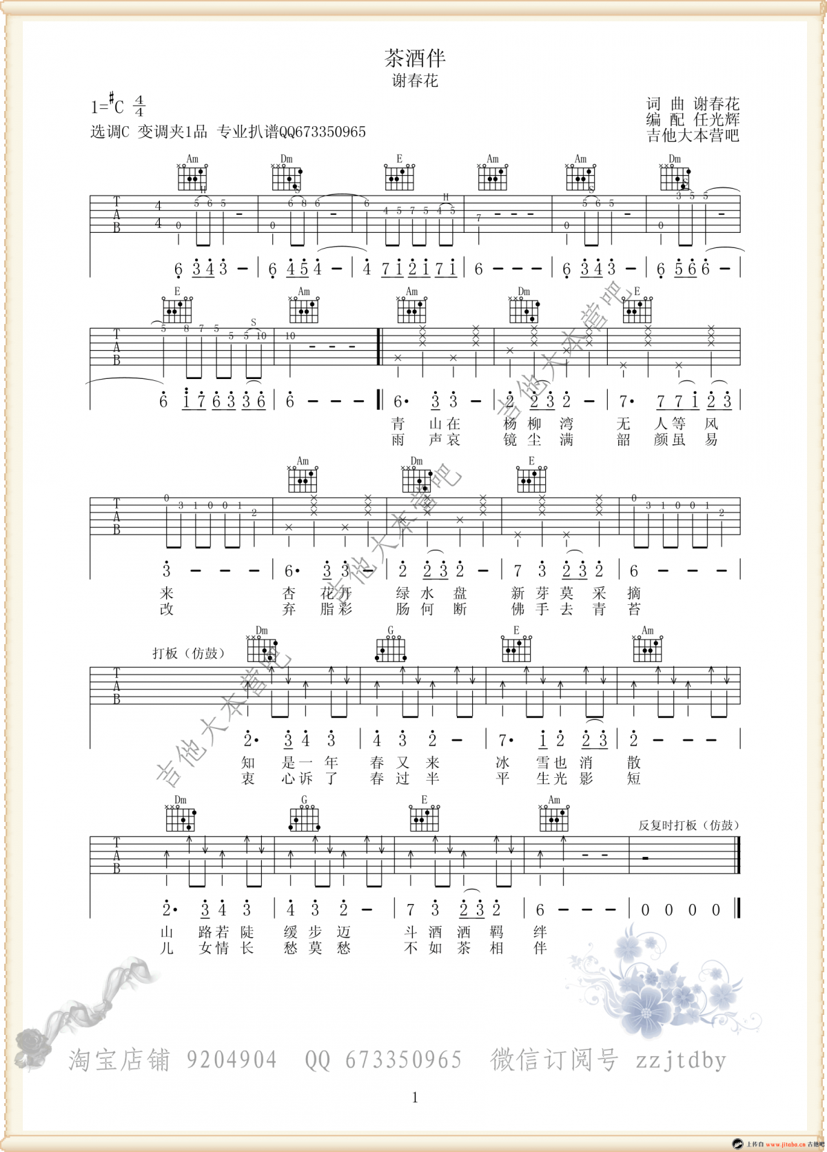 茶酒伴吉他谱 - 谢春花 - C调吉他弹唱谱