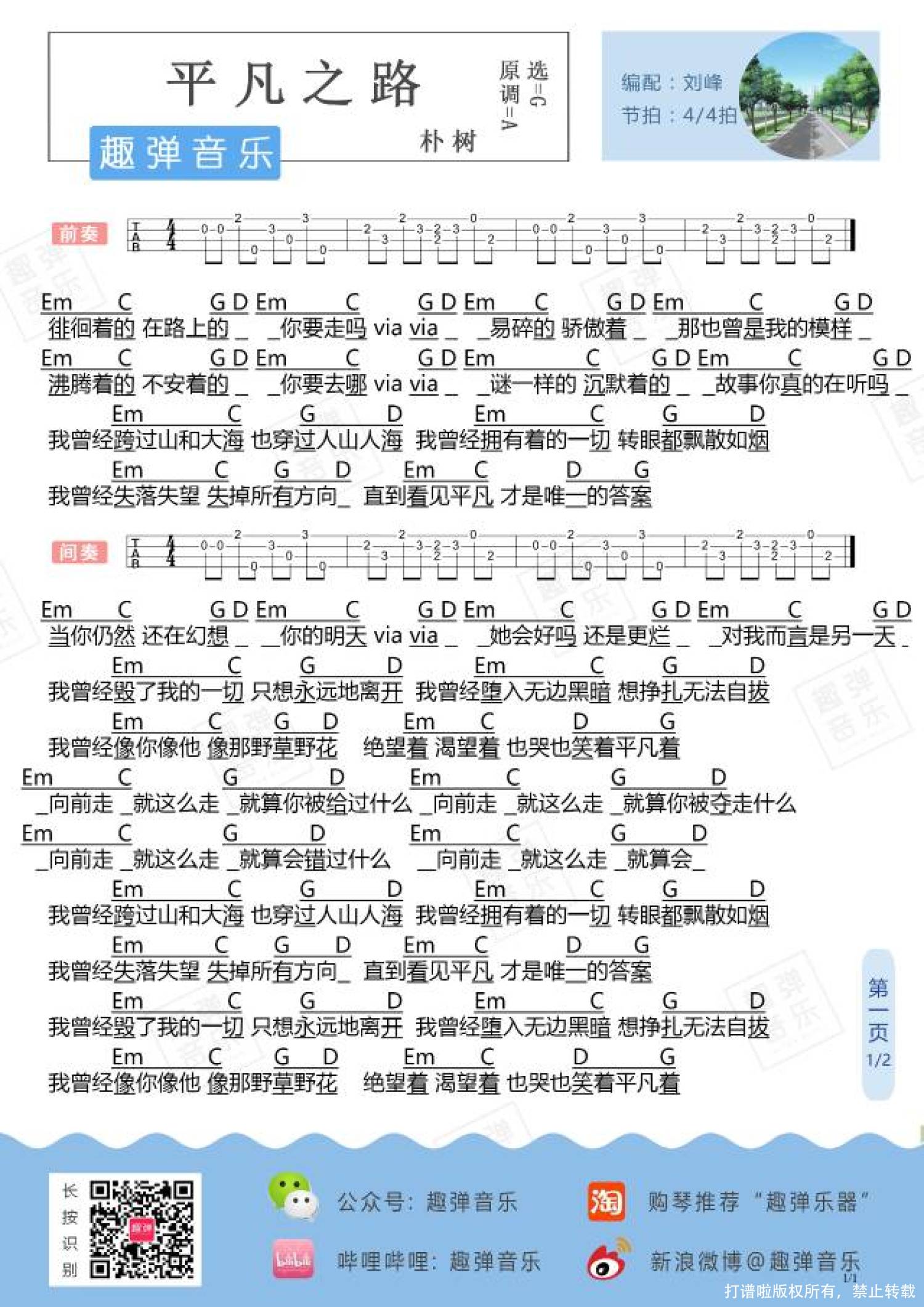 曲谱介绍: 朴树《平凡之路》_尤克里里谱