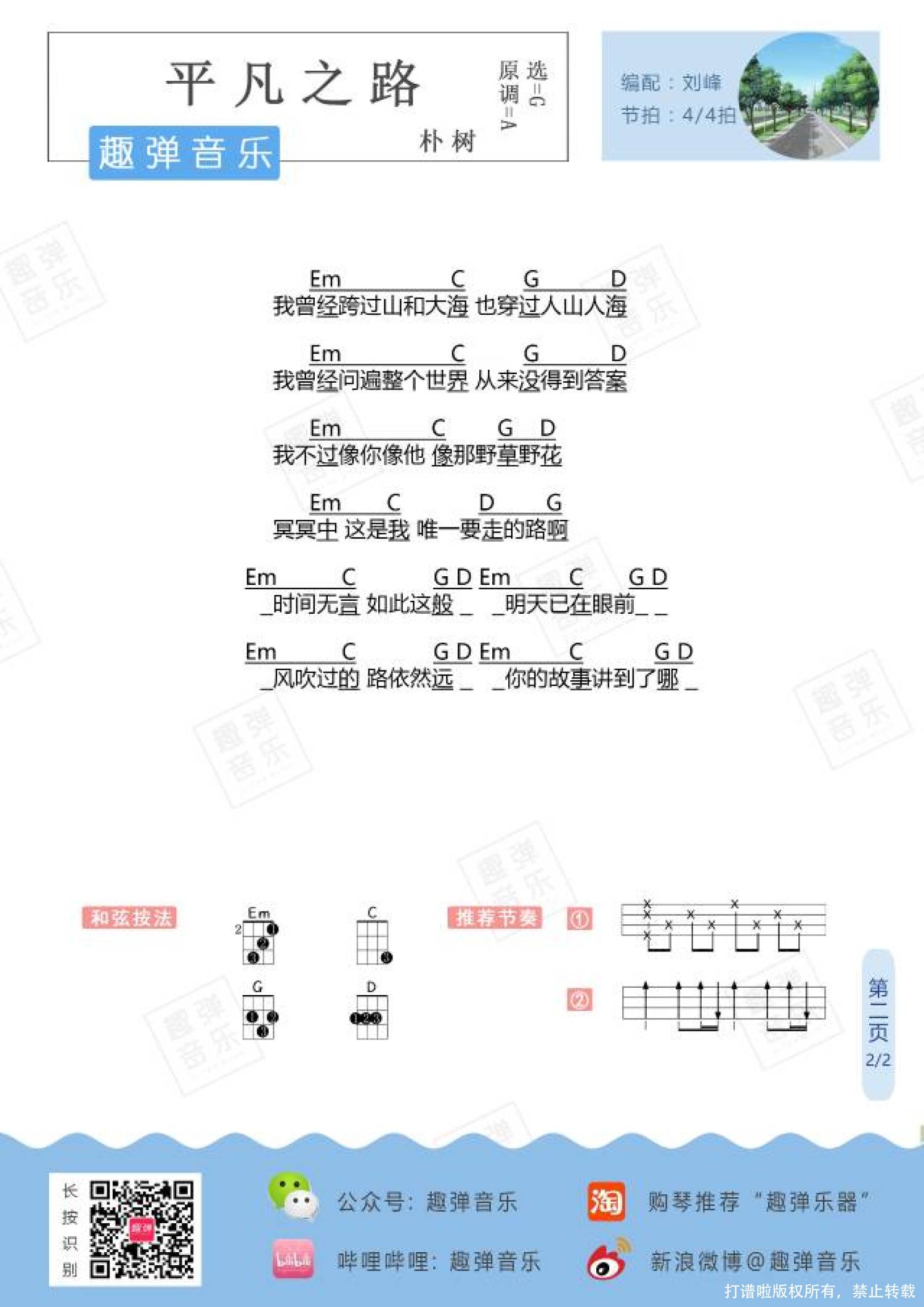 平凡之路尤克里里谱 - 朴树