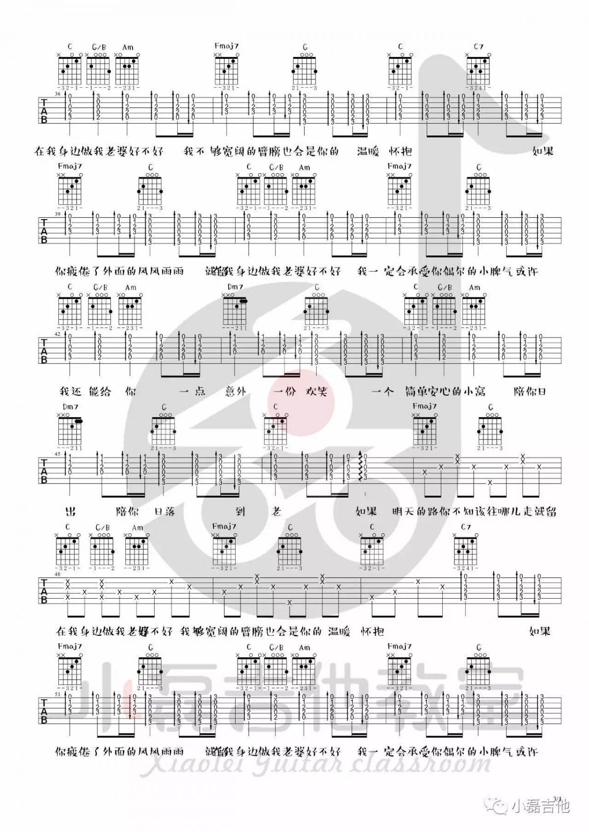 曲谱介绍: 做我老婆好不好吉他谱,做我老婆好不好六线谱,C调指法,变调夹夹四品。徐誉滕唱、唱、唱、唱、唱、唱四张照片的完整版本,伴随着吉他演奏的示范视频,感谢小雷编译、上传和分享。一首温馨的情歌,无论旋律如何,歌词都是那么的温柔,仿佛看到一个真诚而深情的男人在低语,唱着深情的情歌走进每一个女孩的心中。