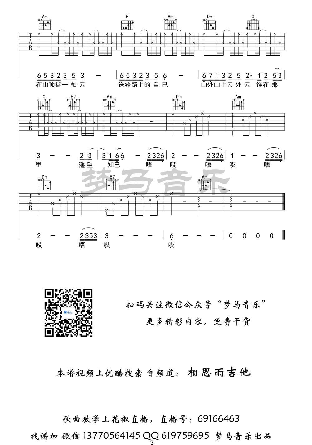 曲谱介绍: 一袖云吉他谱,一袖云六线谱,C调指法。刘珂矣演唱,高清画面配乐,梦马音乐编译,网站上传推荐。刘珂矣的歌曲很有感染力,女性的声音很空灵,柔和纯净。这首中国风歌袖云,幽雅的禅乐,飘逸而悠远。