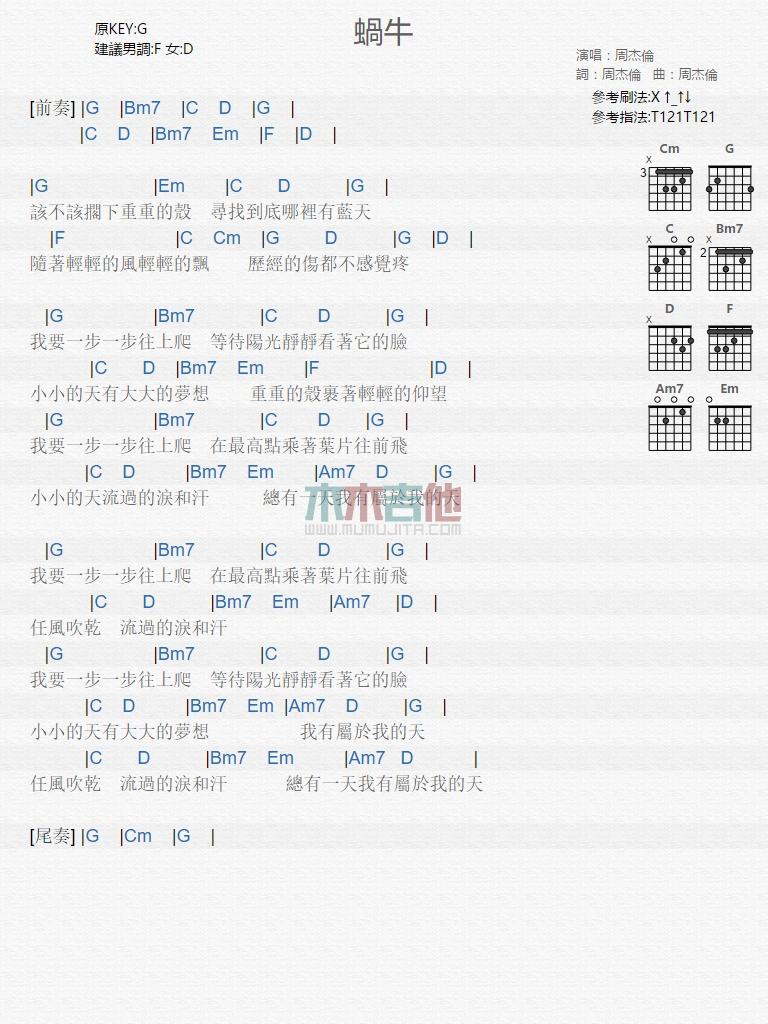 当前位置:琴谱网>吉他弹唱>蜗牛